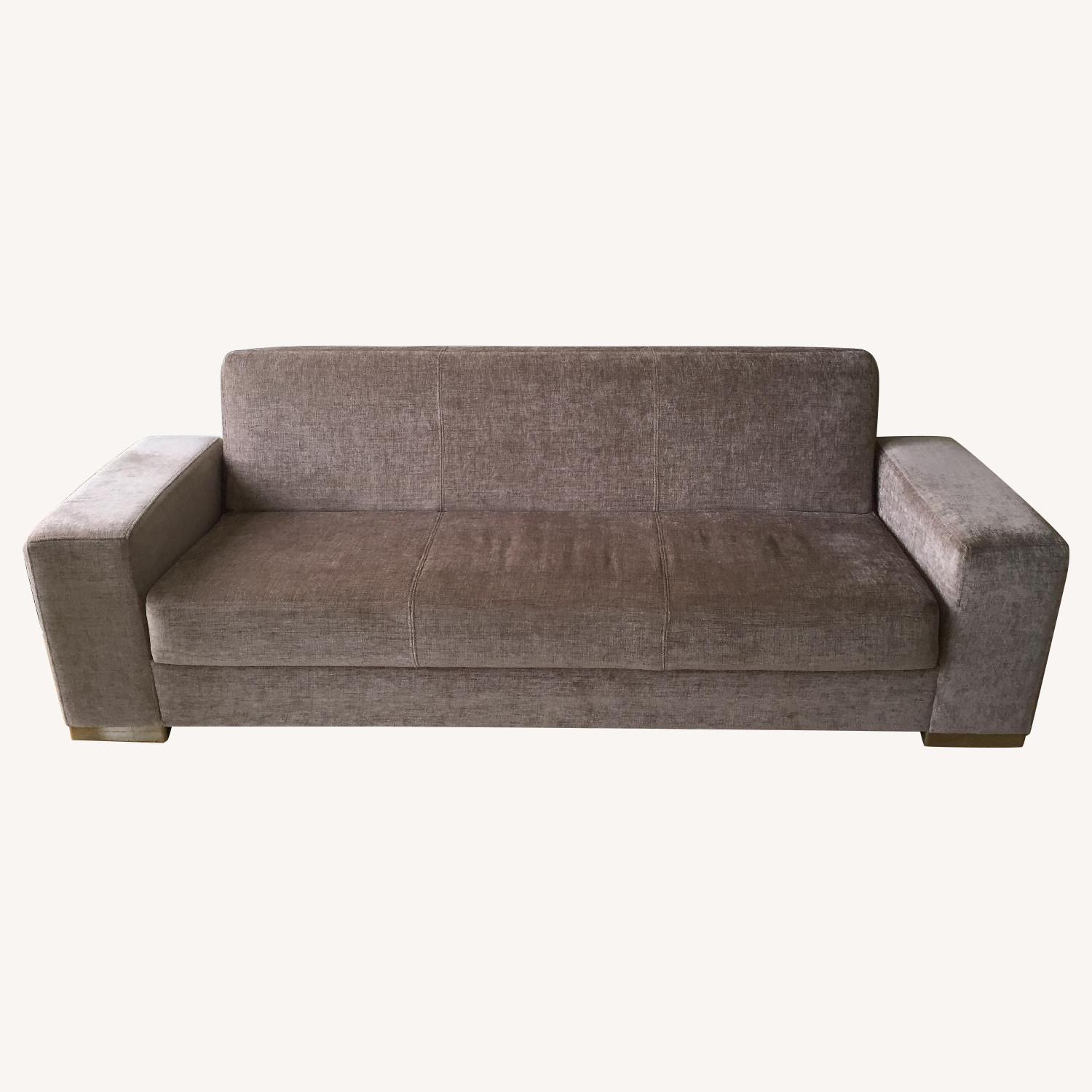 Seller's Notes:6 year old futon / sleeper sofa in good condition. No blemishes on fabric. Hardware is sturdy and solid during normal use, but wobbles a bit when you lift it (internal screws could use some tightening). When used as a sofa, it has plenty of room for blanket/pillow storage underneath the seat. When used as a sleeper, comfortably sleeps one adult up to 6 feet tall, or one cozy couple. Seat depth: 21" Seat height: 18" Armrest height: 24" Sleeper area size: 72" x 42" (twin bed) Overall dimensions as sofa (WxHxD): 96" x 34" x 34" Overall dimensions as sleeper (WxHxD): 96" x 24" x 42"