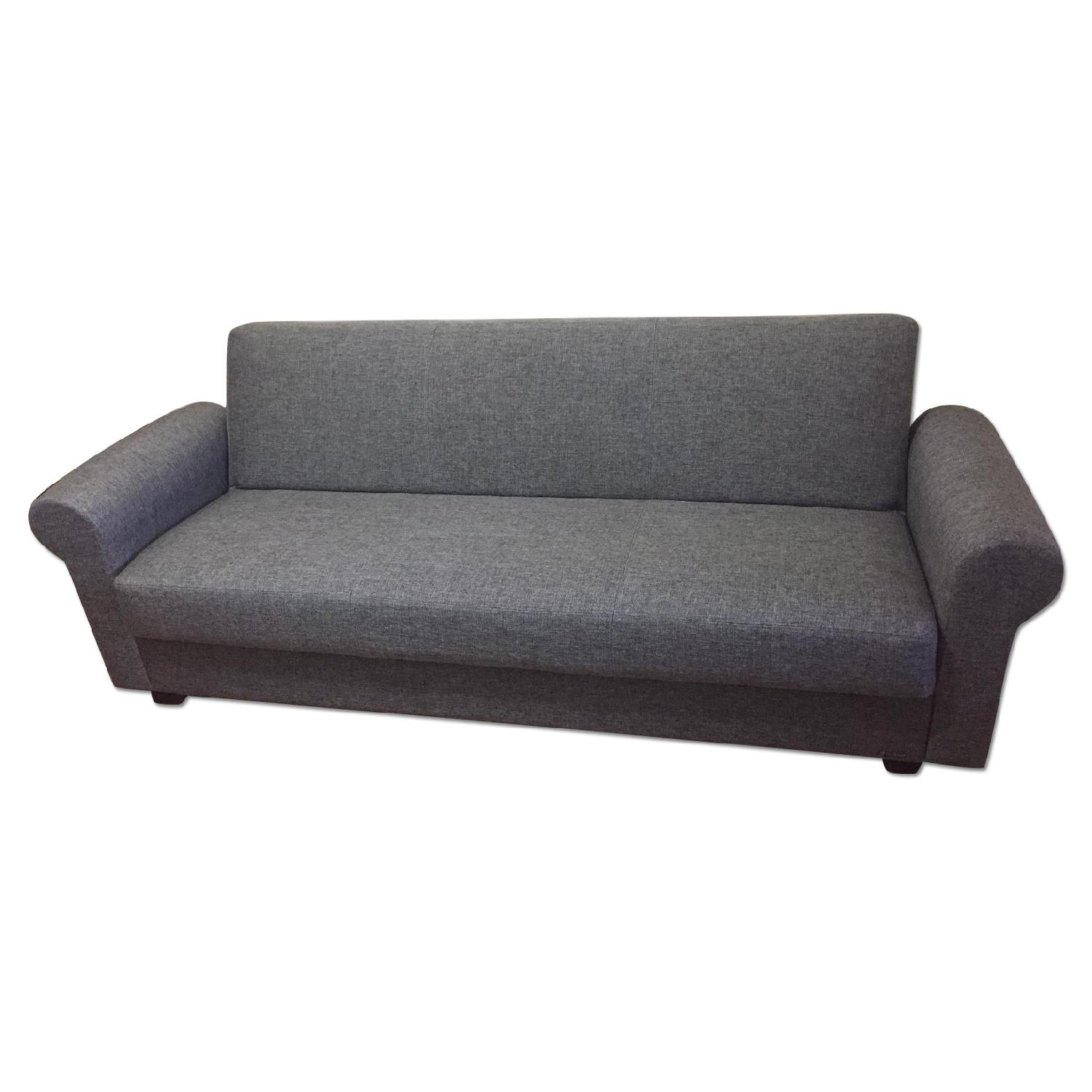 Seller's Notes:Like new sofa in near perfect condition. The arms can easily be removed for easy transport or to fit in smaller rooms. (Length without arms: 75") Lays flat to become a double bed. Modern design, with storage underneath. Basically brand new, no visible signs of wear. Comes from a smoke free, bug free home. We do have one short-haired cat. I should add, this couch is virtually indestructible. In the short time we've had it, my cat has tried to claw the fabric and hasn't made a single mark. Great construction and perfect for someone with pets.