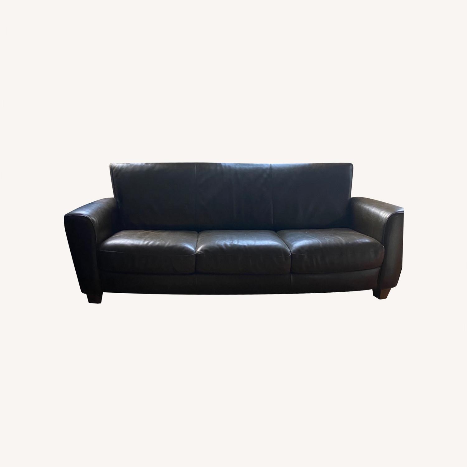 Seller's Notes:Im moving into a smaller apartment otherwise would keep this beautiful piece! This dark brown leather couch is comfortable and high quality. There is a small scratch on the arms but otherwise its in great condition. If you are picking up yourself, the only steps are the outside steps of our stoop.