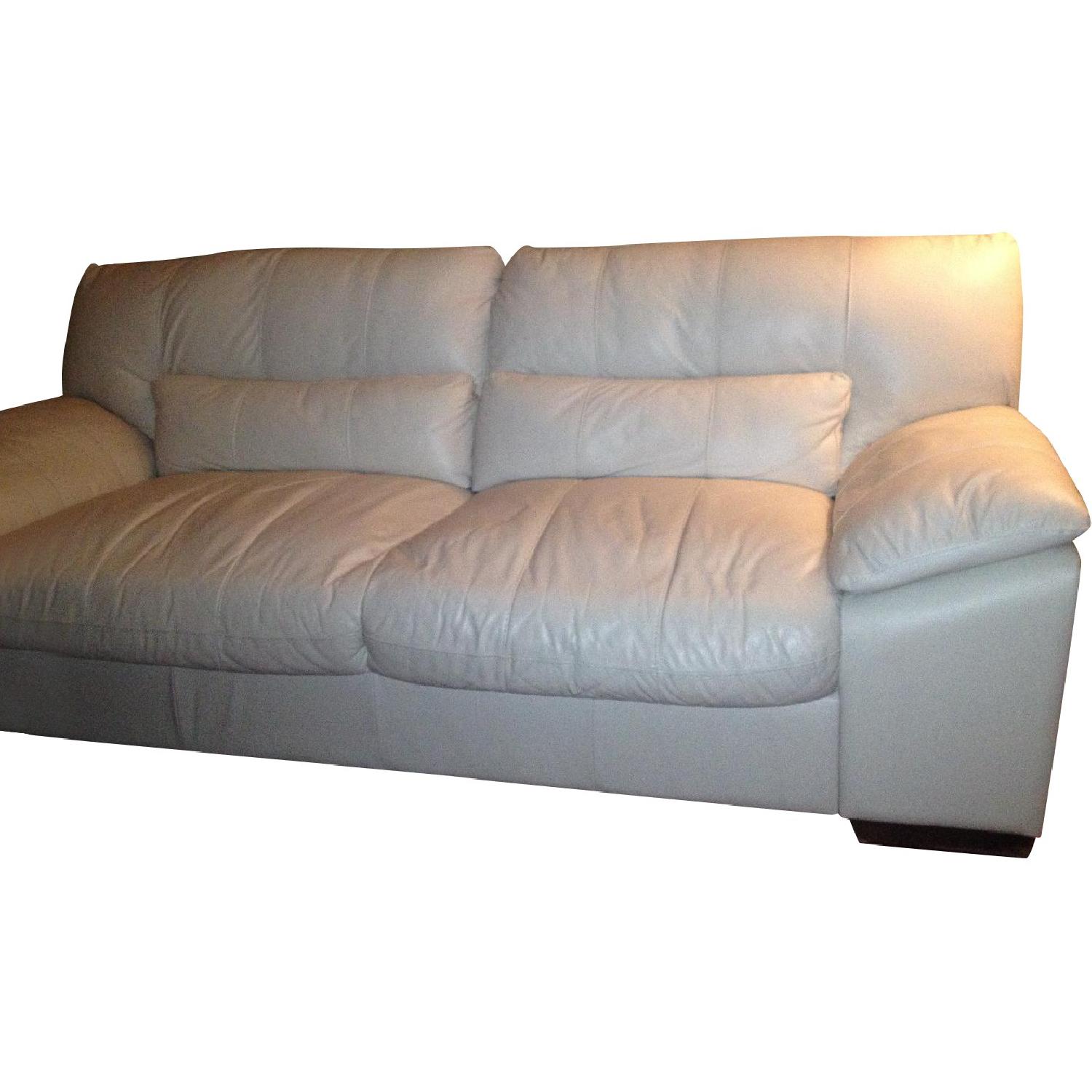 Seller's Notes:Gently used Italian-made white leather sofa. Seats 3 comfortably. Very soft leather. No rips or tears. From a smoke-free and pet-free home. We are redecorating our living room and this no longer matches the style. Dimensions: Floor to arm: 22" Floor to top of back: 32" Depth: 34" Length: 87.5"