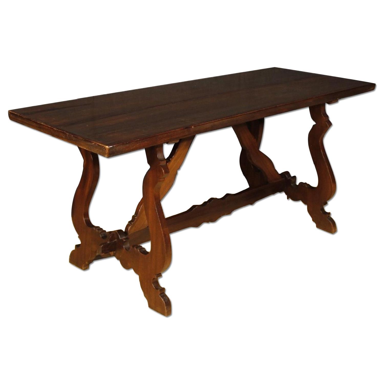 Seller's Notes:COD: 7487 Italian refectory table from the mid-20th century. Furniture carved in walnut and chestnut wood in beautiful patina. Walnut veneered top with chestnut base of great measure and service. Dining or living room table in antique style of pleasant decor. It presents some signs on the top, overall in good state of conservation.