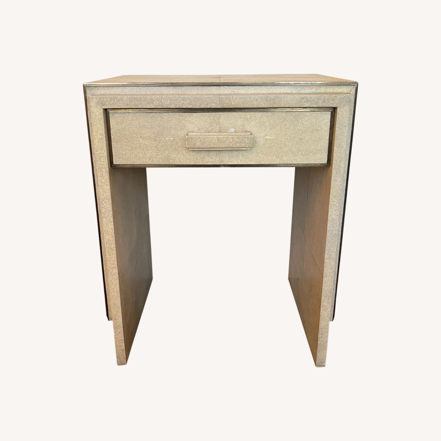 Seller's Notes:Real ivory R&Y AUGOUSTI shagreen end table with drawer purchased at Barney's NY. Made by the Parisian furniture maker R&Y AUGOUSTI. Minor wear commiserate with age. Excellent condition.