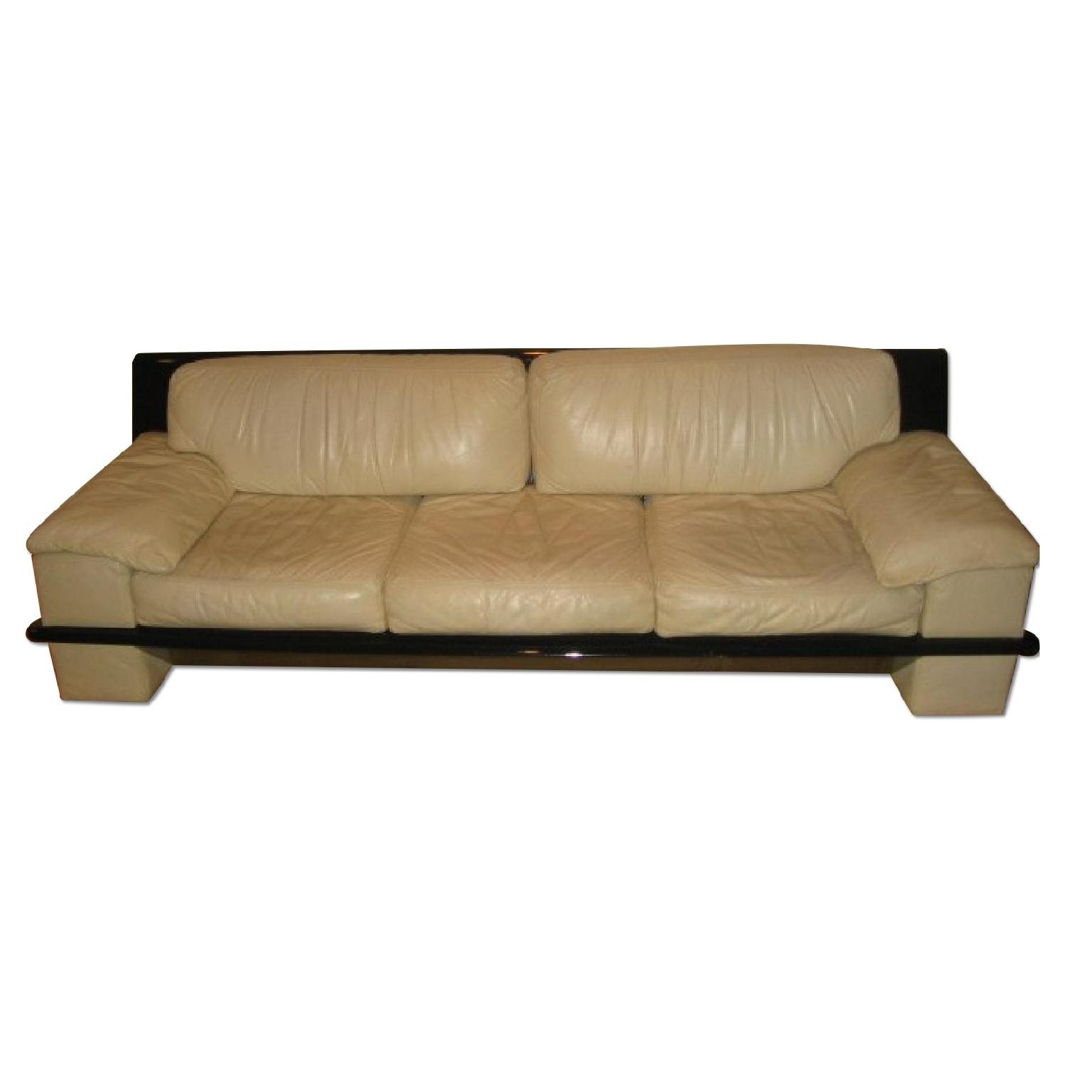 Seller's Notes:ivory white genuine top grain leather,with black lacker solid wood trim,sofa and love seat.Sofa 96x36" love seat light wear,very good condition.Despite its age,was not used too often,mostly for formal gathering.Retail $4,300.00 redecorating