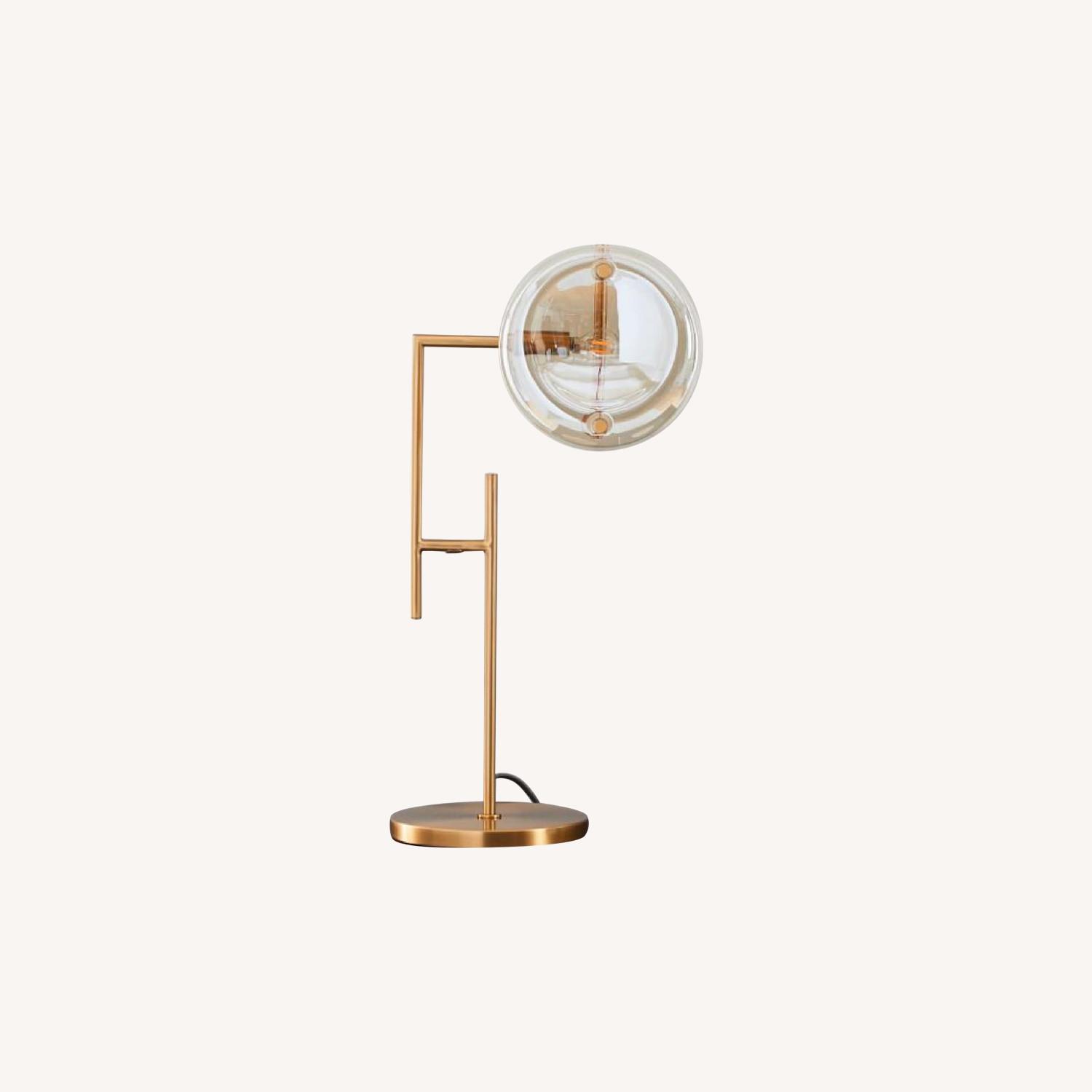 Seller's Notes:Limited edition, no longer available Jamie Harris X West Elm table lamp c. fall 2018. Brass metal body with champagne glass globe--a very eye-catching, unique piece! Price is for a set of two, although can be sold individually. We are quite sad to part with these lamps, but have moved across the country due to COVID.