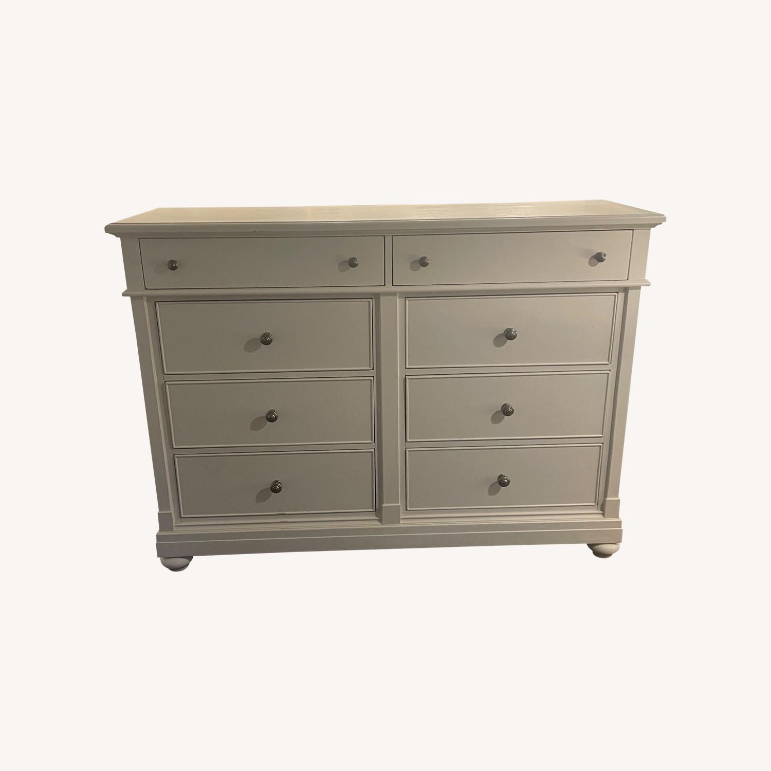 Seller's Notes:This is a beautiful, cream (not white!) solid wood, 6 drawer dresser. Its a statement piece for a large room with plenty of storage and deep drawers. There a few minor scuffs from moving (pictured) that blend into the shabby chic, country style. They could be easily buffed out or painted over.
