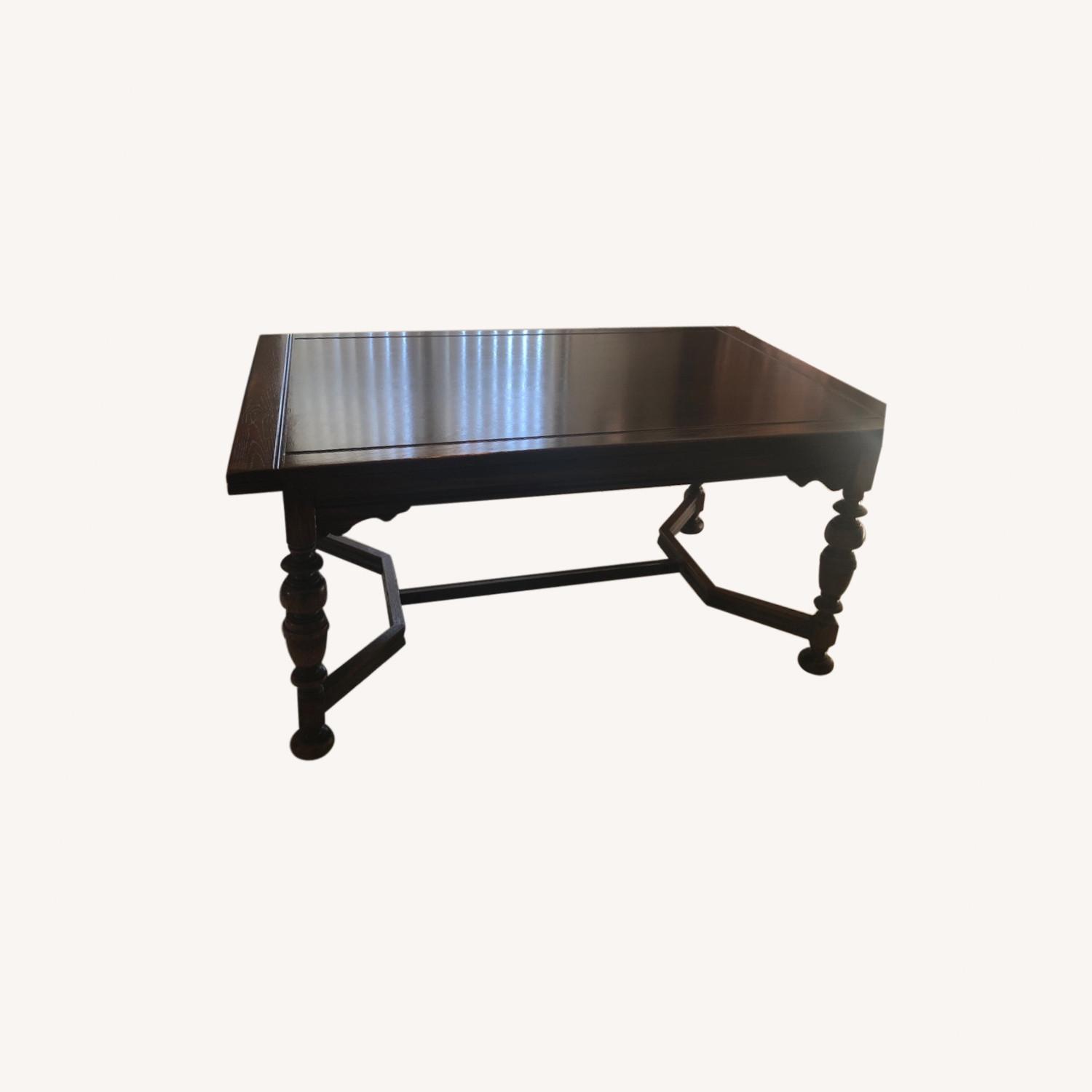 Seller's Notes:Dining set includes one table, one arm chair and five armless chairs. Dining table is 62”L x 38”W x 30”H. Has two leaves 17” each for a total of length of 96”. Arm chair is 27”W x 41”H. Armless chairs are 15”W x 41”H.