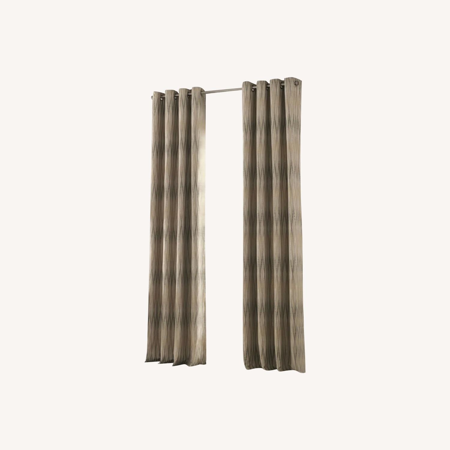 Seller's Notes:This is sold as one set of 2 panels. These curtains feature an elegant linear design and blocks out the light with a thicker outer layer and an inner cotton lining. These curtains remain in good condition with some minor wear.