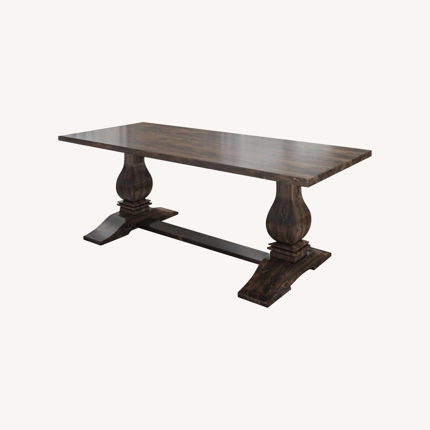 Seller's Notes:The elegant 9' Heirloom Pedestal table is a legacy piece providing a quintessential gathering place for generation after generation. This was originally purchased less than 10mo ago and is in excellent condition. It includes one matching bench, it was intended for use with built-in seating on the other side but you can either get another bench or individual chairs. Handcrafted in the USA - This item is built by hand at the James+James woodshop in the Ozarks, a garage-started company that began 11 years ago with one coffee table. Solid Hardwood, No Veneers - We use Knotty Alder Hardwood to build our furniture. All our lumber is kiln-dried, which prevents warping and cracking. Durable Finish - Our durable polyurethane finish makes our furniture resistant to everyday wear and tear.