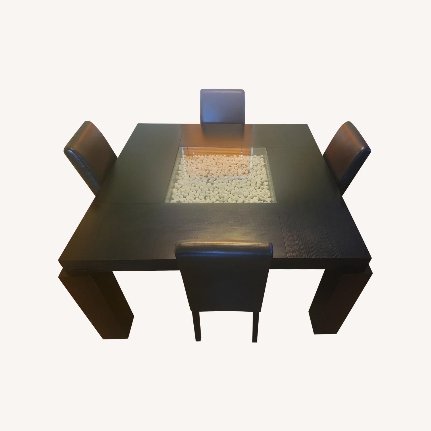 Seller's Notes:Elegant dining glass table w stones in the middle as the highlights, received a lot of.complements .this.dining set was only used 3 times on.special occasions and was taken care of very good. Am retiring and downsizing need to sell it asap