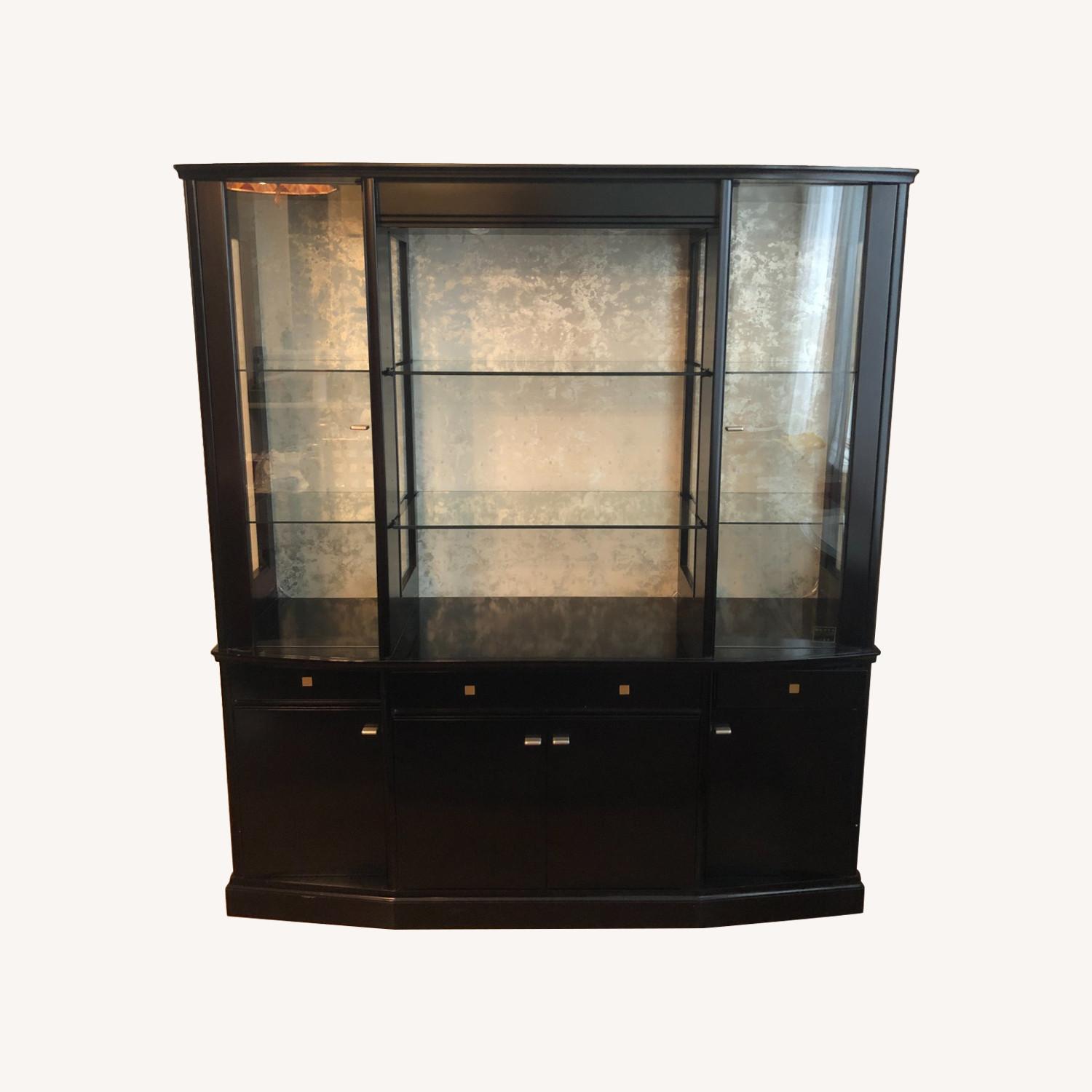 Seller's Notes:An elegant and modern wooden lacquer china cabinet by the celebrated Morishige furniture brand. Morishige is a premium Japanese furniture company that specializes in handcrafted wooden furniture with an elegant yet modern design aesthetic. This piece was imported from Japan and is in excellent condition with minimal wear and was used to display and store fine china. This item has: - 3 shelf sets with glass doors on the right and left sides to display items - 4 small drawers for small item storage, and 8 large cabinets with doors for storing larger items. While not the same item, the manufacturer link shows the current wall unit for sale in Japan. See the other complementary Morishige dining room pieces for sale on AptDeco.
