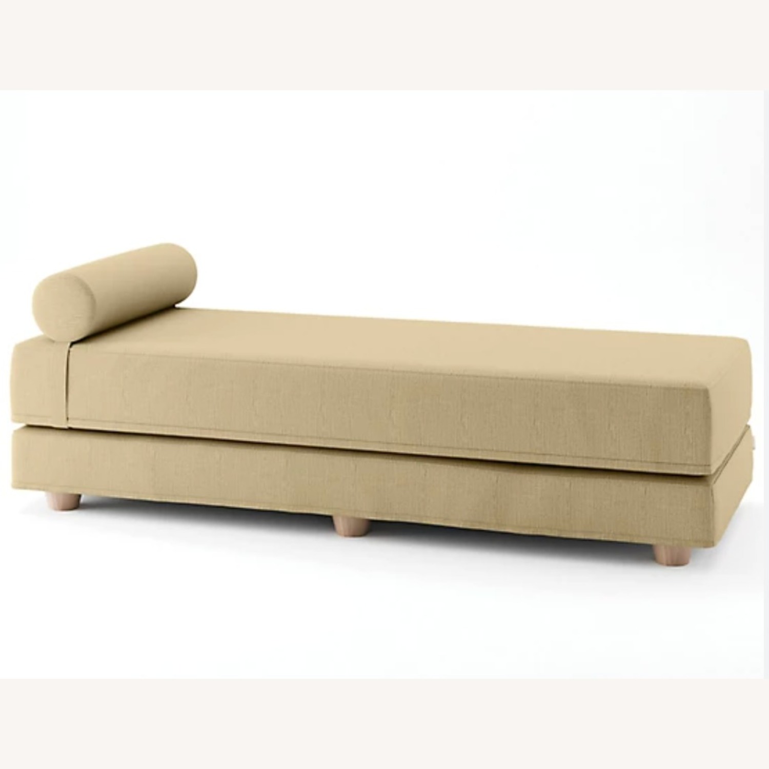 Seller's Notes:Beige Jaxx Alon queen size fold out daybed. Folds into comfortable bed with swank memory foam material. Super comfy and barely used. Paid $800 for it . Just moved from a 3 bedroom house in L.A. to a 1 bedroom apartment in NY, so have a lot to part with that is really nice and barely used. It has no blemishes, but it came with these little wooden legs that screwed on the bottom. I never really used them and can't find them now, so it sits on the floor very sturdy.