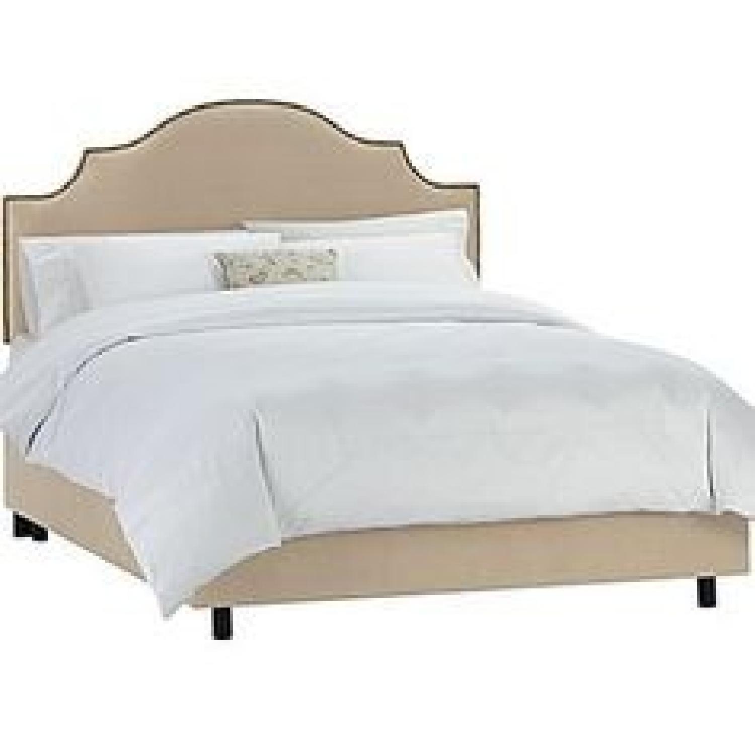 Seller's Notes:JCPenney Kayla headboard and full size bed frame upholstered in buckwheat velvet. In great condition with all the original hardware and no noticeable wear.