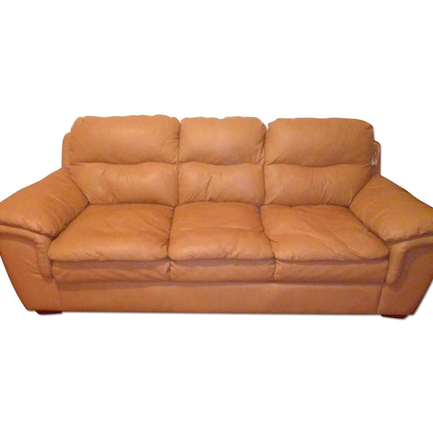 Seller's Notes:I purchased this leather sofa for my mother at JCPenney as a gift.about 3 yrs ago.Sofa is leather and in good condition and it has attached the original manufacture tag attached to the right upper front side of the sofa..measurements are 93"W x 24" D x 39"H. color is Taupe and seats three people very comfortable,Is also firm and has many years to come.Ottoman is also included with sofa purchase..Unfortunately the sofa has three very small burns on the right arm and did not go through the leather.You can see in one of the photos. Thank you for taking the time to read.