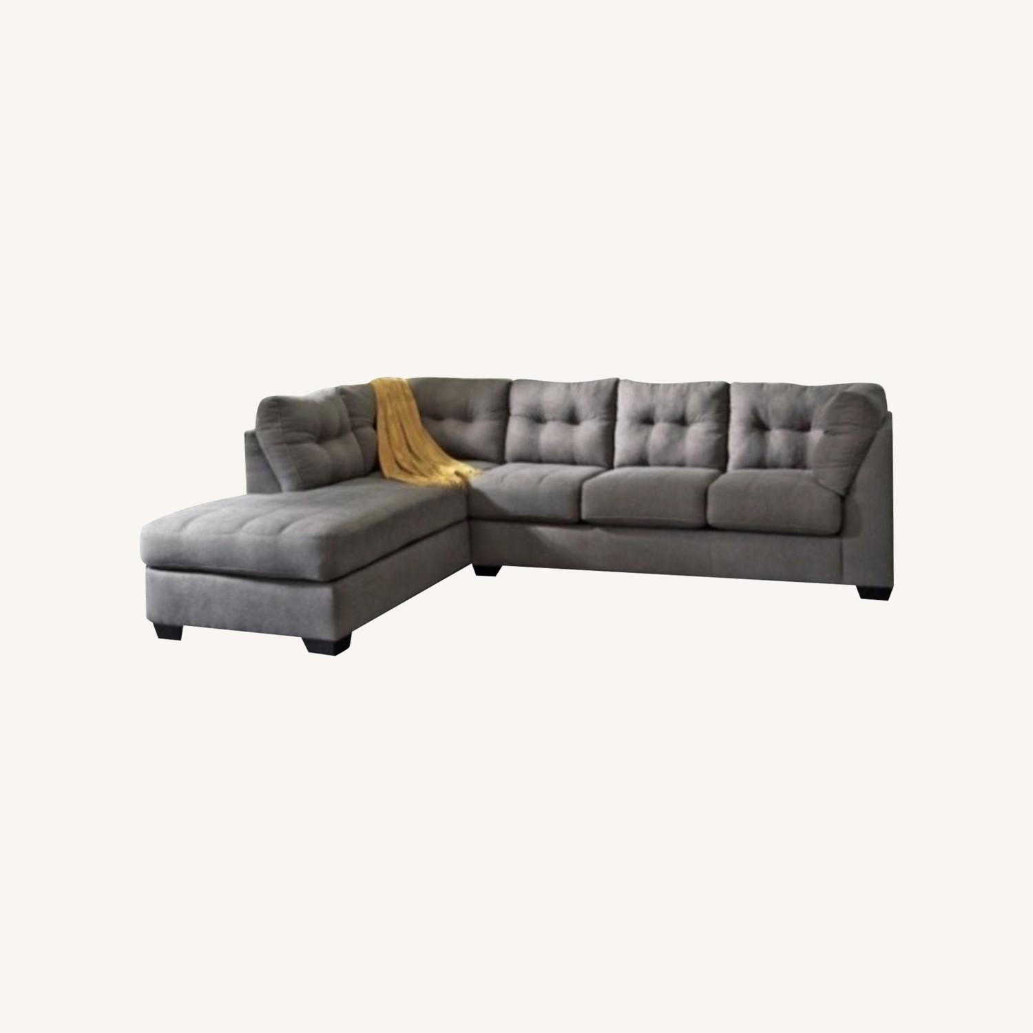Introducing the Marleton 2-piece Tufted Fabric Sectional with Chaise, where cozy comfort meets contemporary style. Crafted with a corner-blocked frame, this sectional is built to last. The fabric offers a classic look that's versatile and enduring, while modern stitched details add a touch of trendiness to your living space.