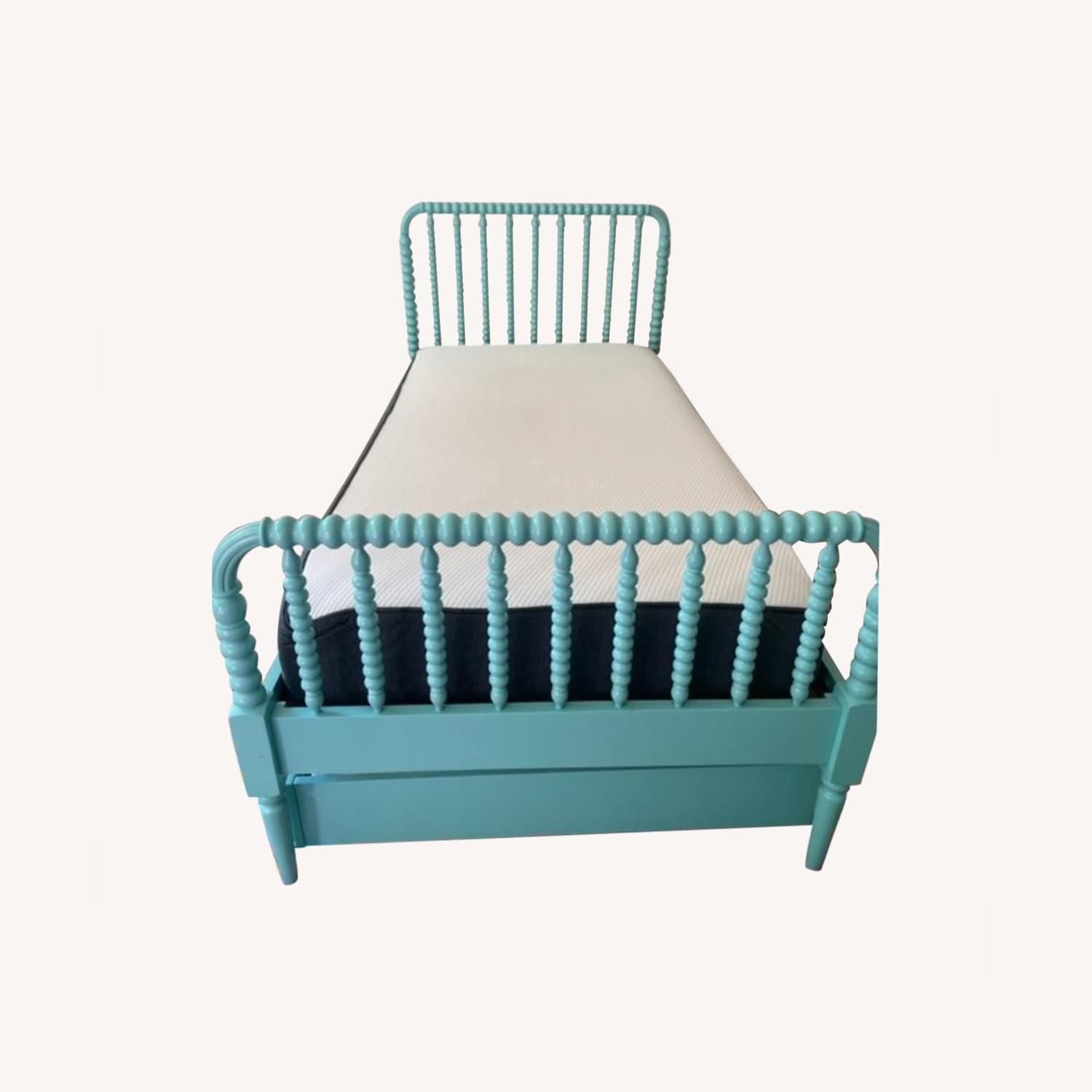 Seller's Notes:Bed is in amazing condition and super cute! Gorgeous teal color. Comes with trundle included. Has very, very minor scratches.