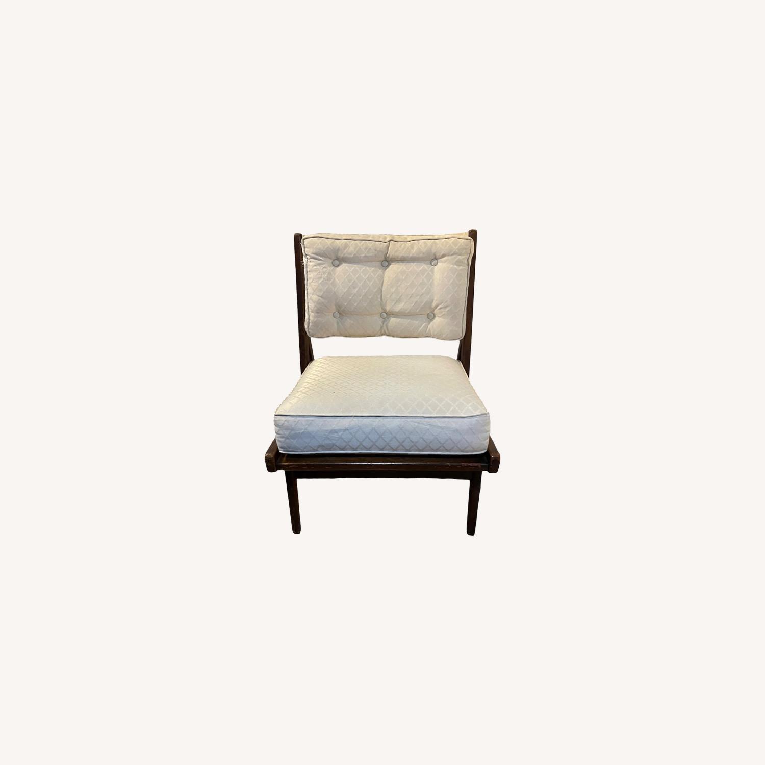 Seller's Notes:Lounge chairs by Jen’s Risom 1960s Condition: Vintage / Antique / Used Classic chair. absolutely beautiful. Sleek lines, walnut wood. Chair is solid and sturdy, very comfortable with solid wood seats under the cushions and sloping back Fabric is in very good condition w slight wear. Wood has small nicks & dings typical with age and use. The makers sticker is under cushion This ergonomically focused design places you in a balanced position upon seating in a way that relieves lower back and hip pressure making them a delight to seat on. Height: 29 in. Width: 22-3/4 in. Depth: 29 in. Seat Height: 17 in. Styles: Mid-Century Modern Materials: Fabric, Textile, Walnut, Wood Sculpting, Sculpture Materials, Wood Brand: Jens Risom, Jens Risom Design Designer: Jens Risom Period Made: 1960s Number of Seats: 1