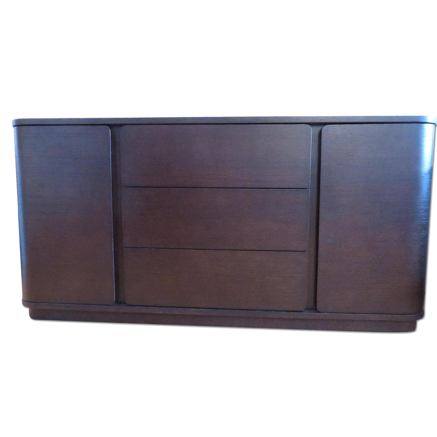 Seller's Notes:Beautiful wood sideboard in excellent condition. 2 cabinets and 3 drawers for storage. We are moving to Europe and can't bring this with us. Only some very small minor scratches on one side which are included in the pictures.