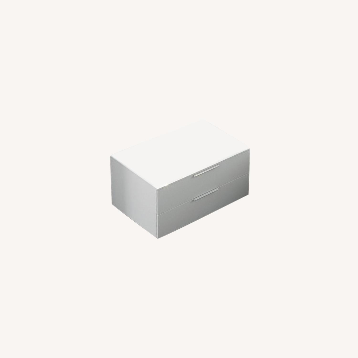 Seller's Notes:Set of 2 Jesse Stage nightstands,in matter white lacquer, with satined aluminium handles. Inside, melamine finish in a medium grey (great to clean). Each nightstand is made of : ST1121 (nightstand in matte lacquer) + ST611 (top, matte lacquered). We imported this directly from Italy when we first furnished our small place in NY. Now it's time to reno the place... so we have to sell. Very nice pieces. Could also be stacked on top of each other to make a higher unit. I honestly don't recall any damage or scratch or issue of any kind, but having been around for 10 years (very gently use) they might show some wear...although I personally don't recall ever having seen any! I apologize for the quality of the only picture I posted, I am currently unable to travel internationally and will try to get some additional images with the help of my friends in NY :-)