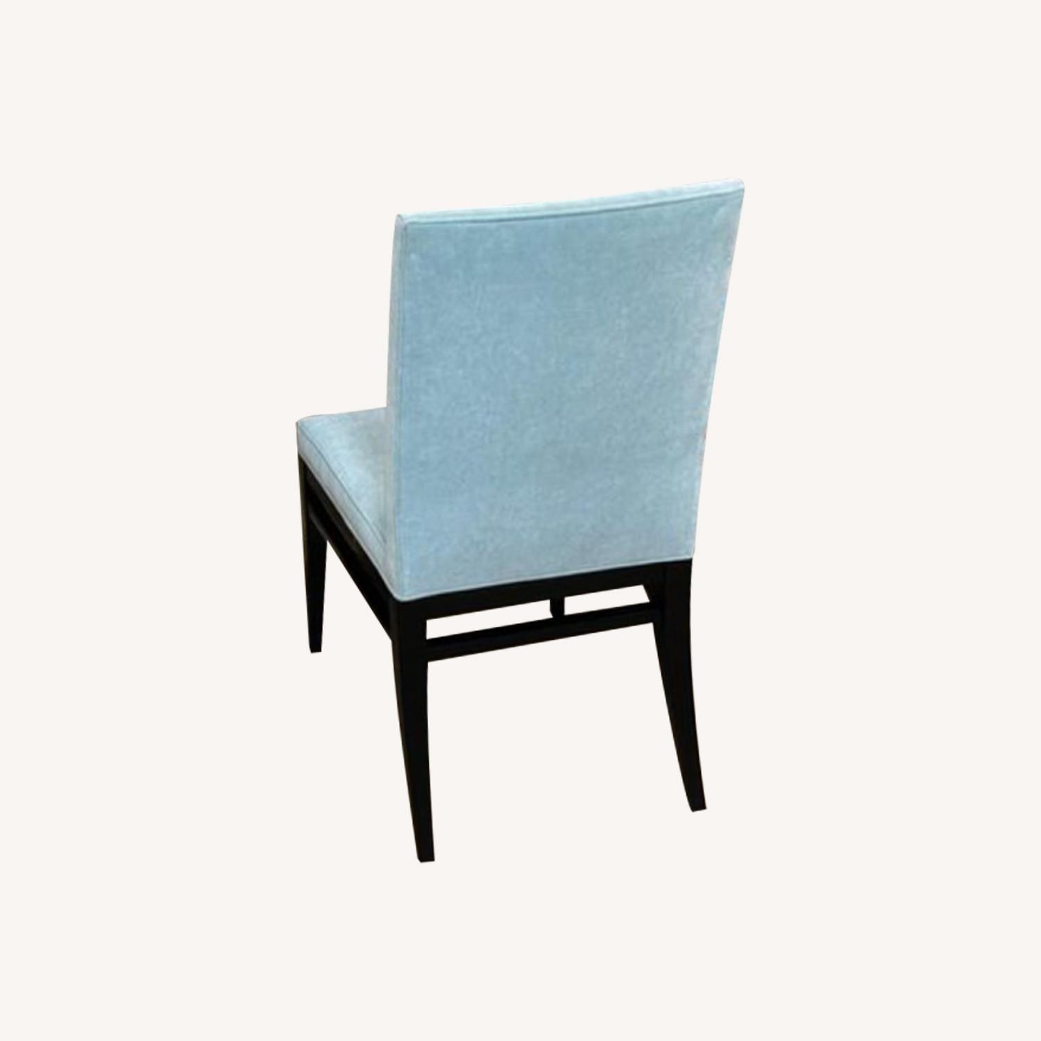 Seller's Notes:6 Jessica Charles custom chairs, seafood green velvet with deep espresso leg finish. Excellent condition, purchasing a new dining table and chairs for our new house.