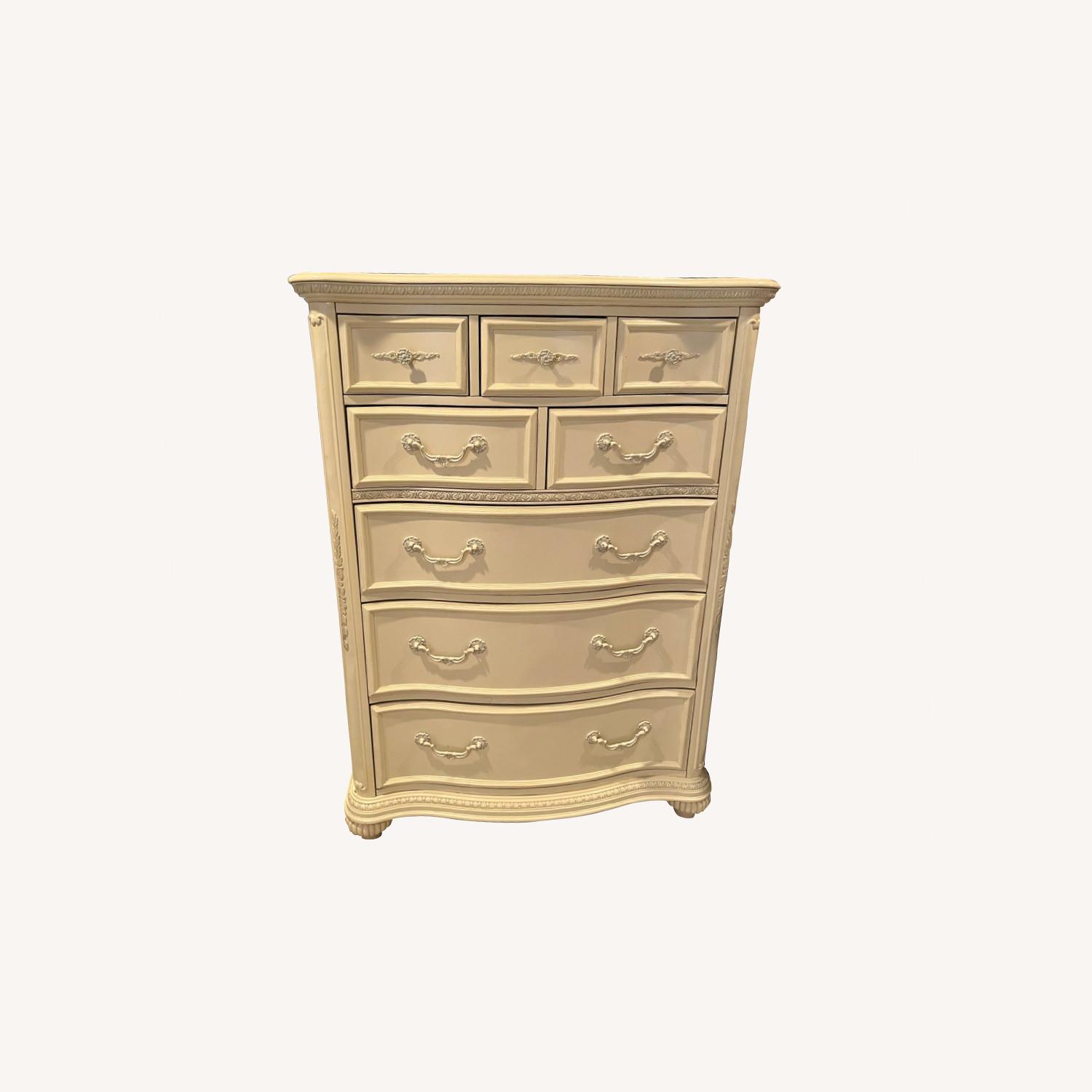 Seller's Notes:Jessica McClintock seven drawer dresser in Antique ivory. Great condition. Dimensions 38"W x 20"D x 52"H