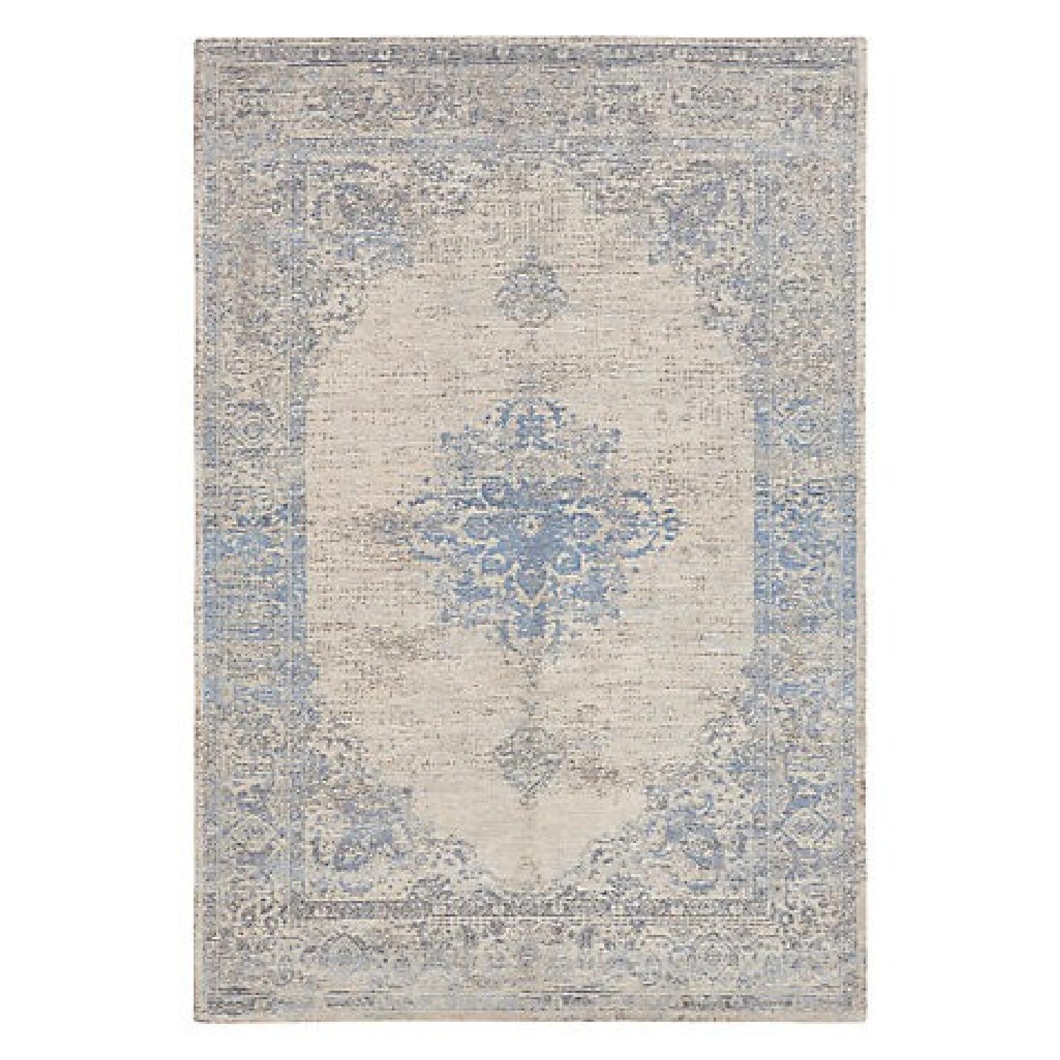 Seller's Notes:Brand new condition, less than 6 months old. Purchased in London but now doesn't fit in NYC apartment. This gorgeous ‘vintage aesthetic’ flat-weave rug takes the timeless appeal of oriental carpeting and gives it a contemporary twist. It features different shades of weave, from clear geometric designs to worn away patches that all blend together beautifully to give you a soft blue rug that’ll live equally well in a contemporary or more traditional décor. This John Lewis Starfield rug is made from wool and cotton chenille and has been woven on a Jacquard Wilton loom and hand finished with precision. The cotton chenille gives the rug a subtle sheen as well. less