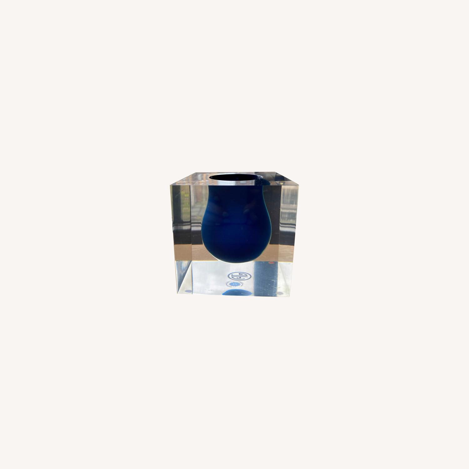 Seller's Notes:Bel Air mini vase, great for small floral arrangements. 100% acrylic. Has scratch on side, but cannot be seen from front if vase is positioned correctly. A great pop of color in the room!