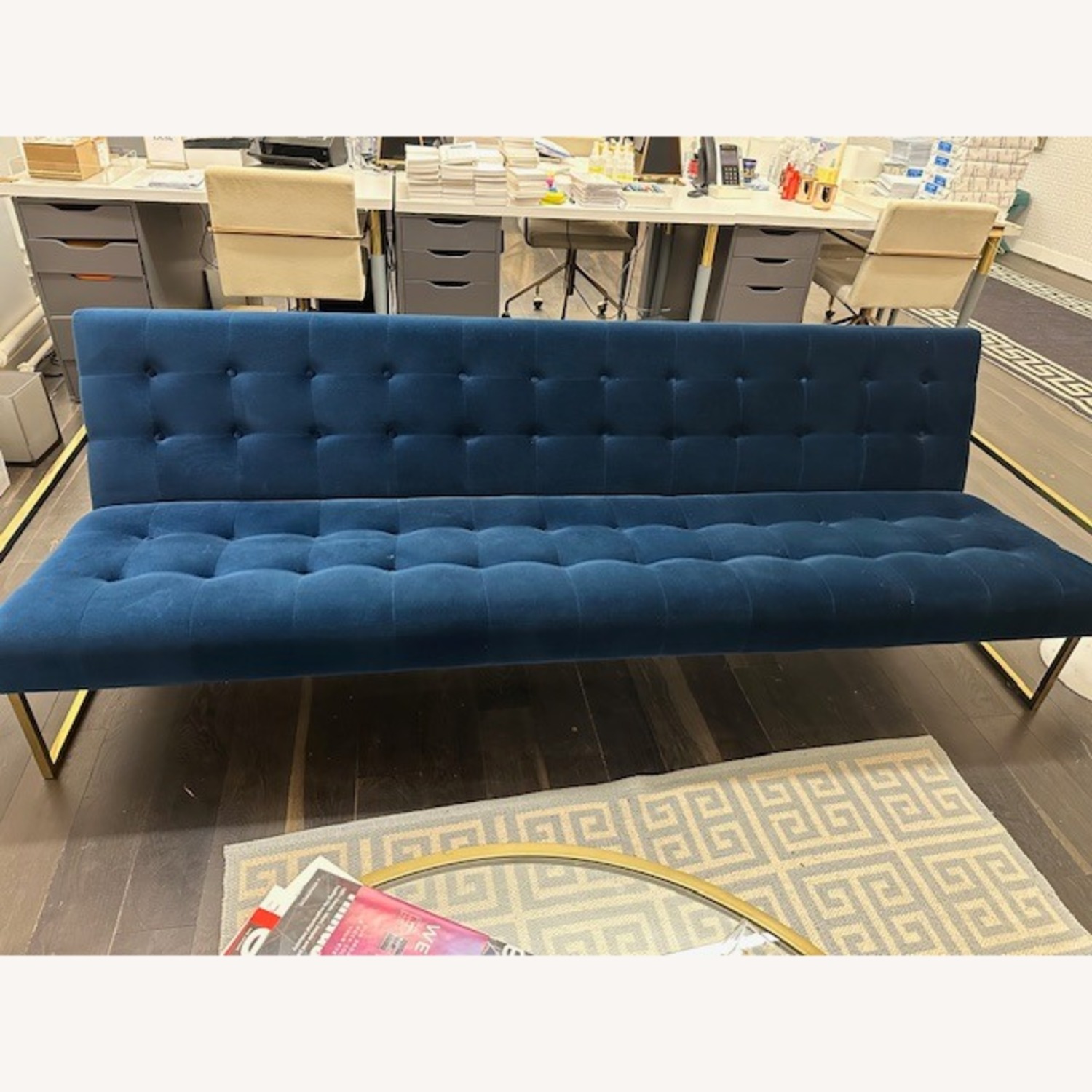 Jonathan Adler Blue Velvet Goldfinger Sofa