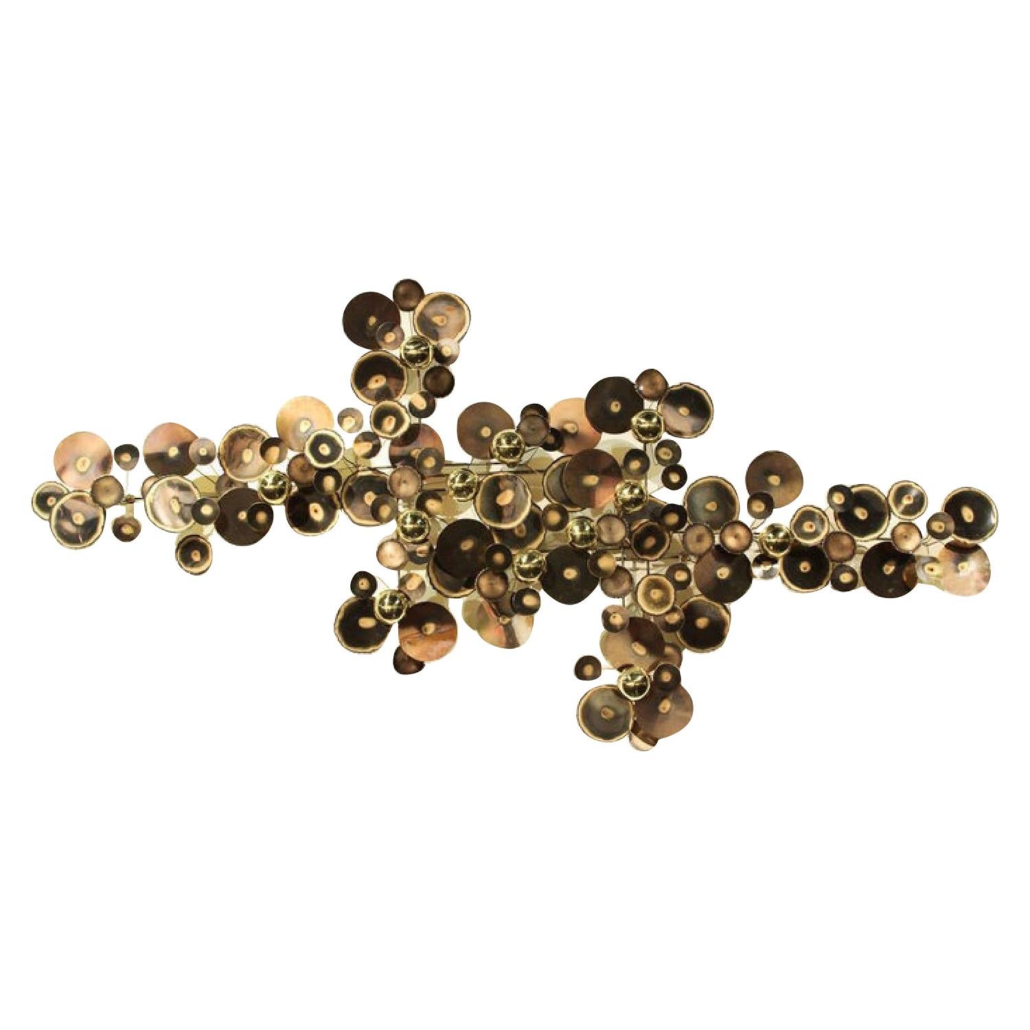 Seller's Notes:Impulsuve Purchase at Jonathan Adler warehouse sale 10/26/18 For years, Jonathan Adler has been obsessed with the ultra groovy metal sculptures of Curtis Jeré: gorgeous sunbursts, explosions of brass raindrops, and mirrors suspended by exquisitely crafted brass petals. In an exclusive partnership with Jonathan Adler, the C. Jeré studio has reissued their most iconic mid-century designs. These handcrafted signifiers of mid-century modern add just the right je ne sais quoi to any décor—why have boring old paintings when you can have the dynamism of these 3D sculptures blasting off your walls?