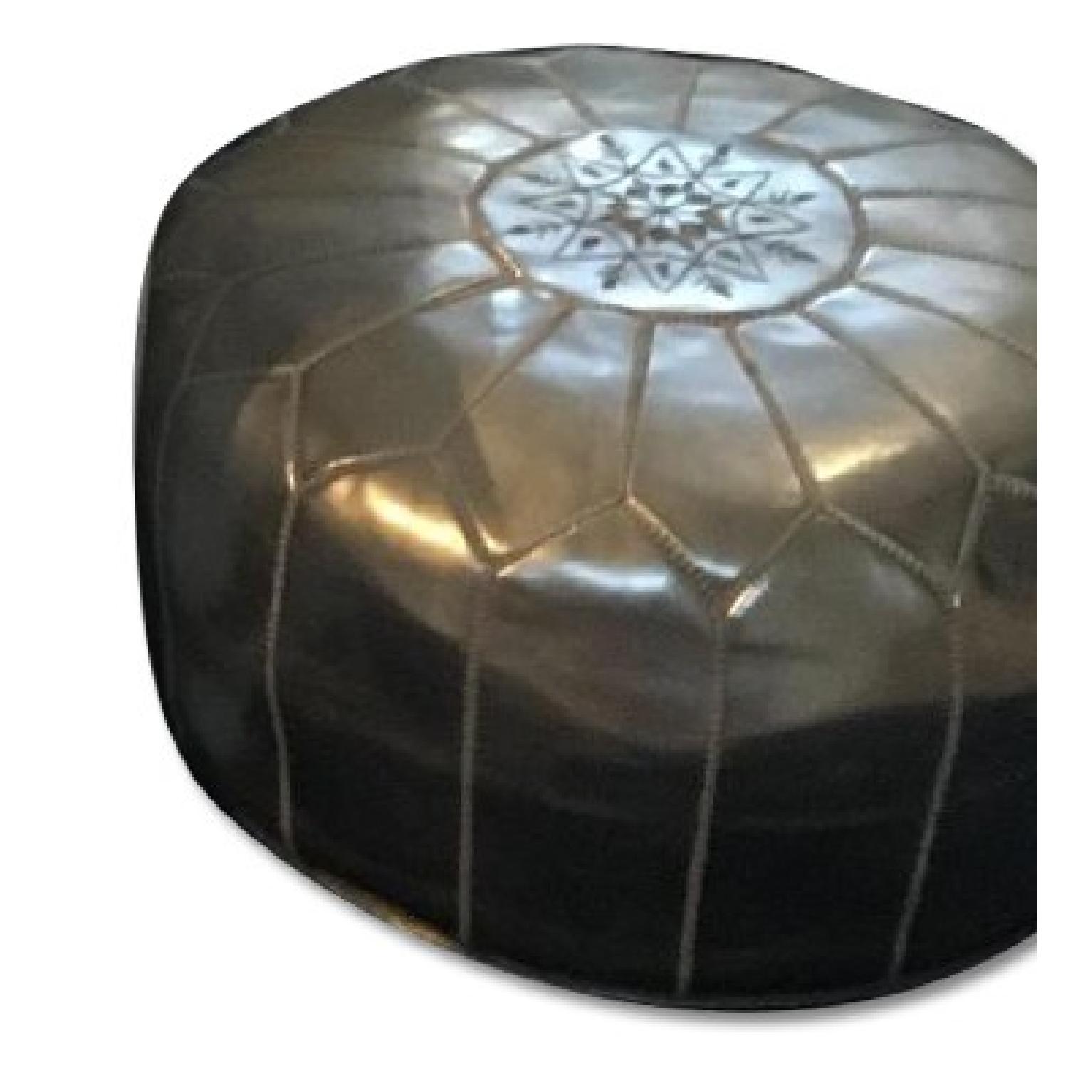 Seller's Notes:Back on the market! This is a pair of beautiful high quality silver poufs to help punctuate any room. Made in Morocco by skilled artisans, this leather pouf is an essential for adding a pop of handcrafted color to your home. Each pouf is dyed to exact color specifications and hand-sewn for superior durability. Filled with dense Kapok, this versatile piece is perfect as an ottoman or decorative accent. I love these poufs but they are too big for the new home. Light scratches on the top surfaces. No stains or discoloration.