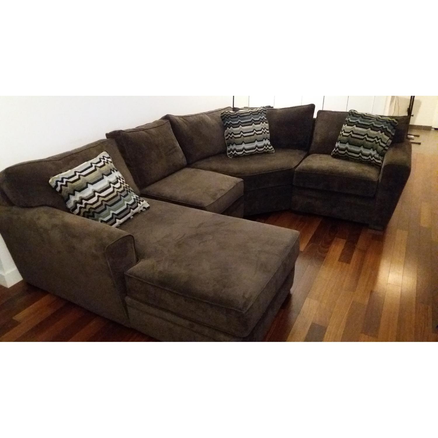 Seller's Notes:Selling my 4 piece Gypsy Chocolate Artemis II microfiber sectional from Raymour and Flanigan. Just looking to redecorate the setup in my living room... The set is in Very Good Condition, No Bemishes or Stains, and was purchased slightly over a year ago. It comes with a Left-Hand facing Chaise, Armless Chair, Wedge, and Right-Hand facing Chair Perfect compact 4 pc sectional setup for NYC living room apartments Left-Arm-Facing Chaise L: 37" x W: 67" x H: 35" Weight: 100 lbs. Seat Depth: 50" Seat Height: 18.5" Armless Chair L: 28" x W: 38" x H: 35" Weight: 75 lbs. Seat Depth: 23.5" Seat Height: 18.5" Wedge L: 51" x W: 51" x H: 35" Weight: 75 lbs. Seat Height: 18.5" Right-Arm-Facing Chair L: 35" x W: 38" x H: 35" Weight: 75 lbs. Seat Depth: 23" Seat Height: 18.5"