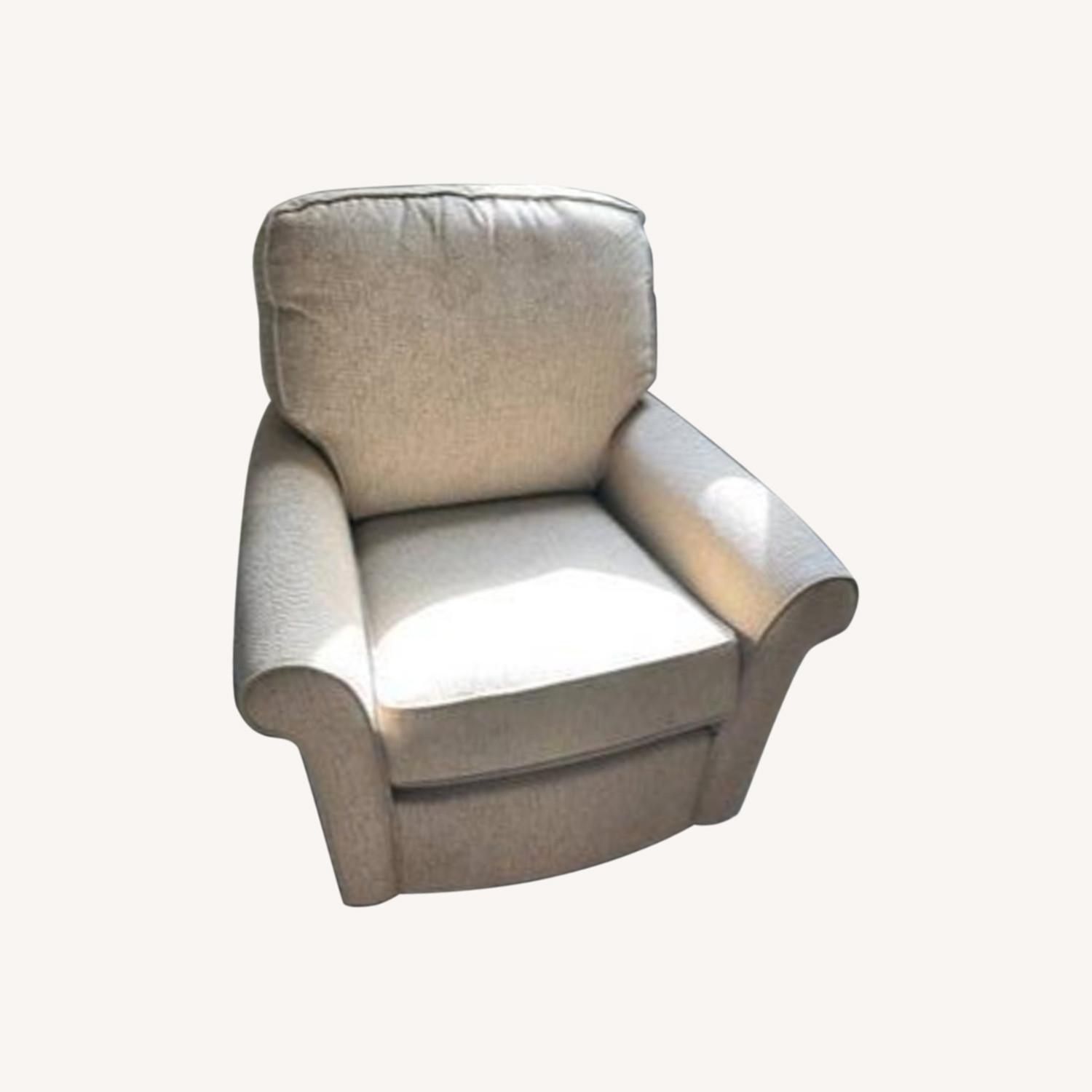 Seller's Notes:Give your living room plush comfort with the Flexsteel Dempsey Swivel Glider. Upholstered in a neutral geometric pattern with tonal welt trim on the back and seat cushions, and on the curved armrests.