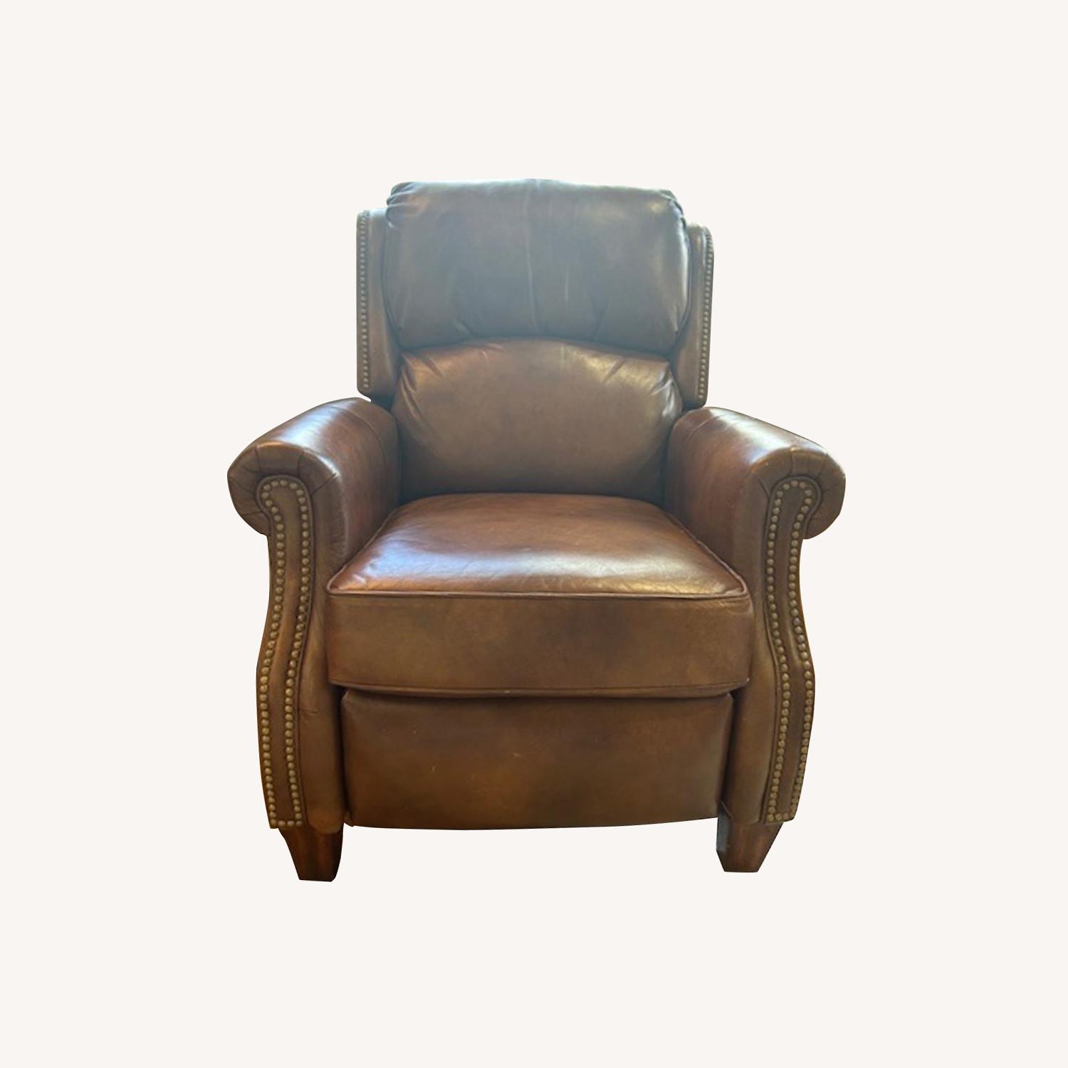 Seller's Notes:This Jordan's Furniture by Flexsteel leather recliner with nailheads is in great condition. It has a high back and is extremely comfortable. Just lean into it for it to open rather than the lever on the side of most models.