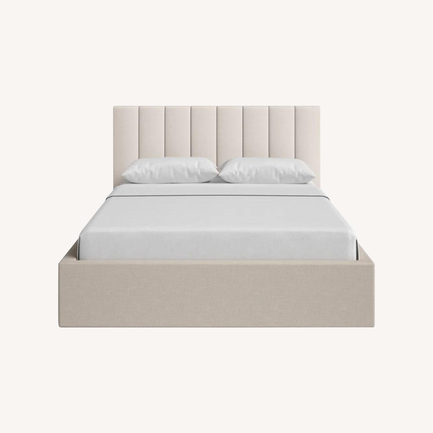 Seller's Notes:Joss and Main Delmar Grounded Upholstered King Bed with Vertical Channel Headboard, Oak Color