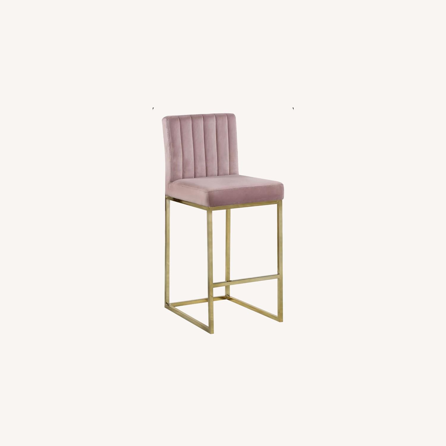 Seller's Notes:Love my bar stools but moving countries so have to say goodbye. Both in great condition! Whether you"re rounding out the kitchen island or pulled up to a pub table, this bar stool is always a stylish spot to sit in your entertaining space. Crafted from a metal frame with a metallic hue, its clean-lined sled legs couple glamorously with its velvet-upholstered square seat and back, filled with foam for comfort and channel-tufted for an eye-catching look.