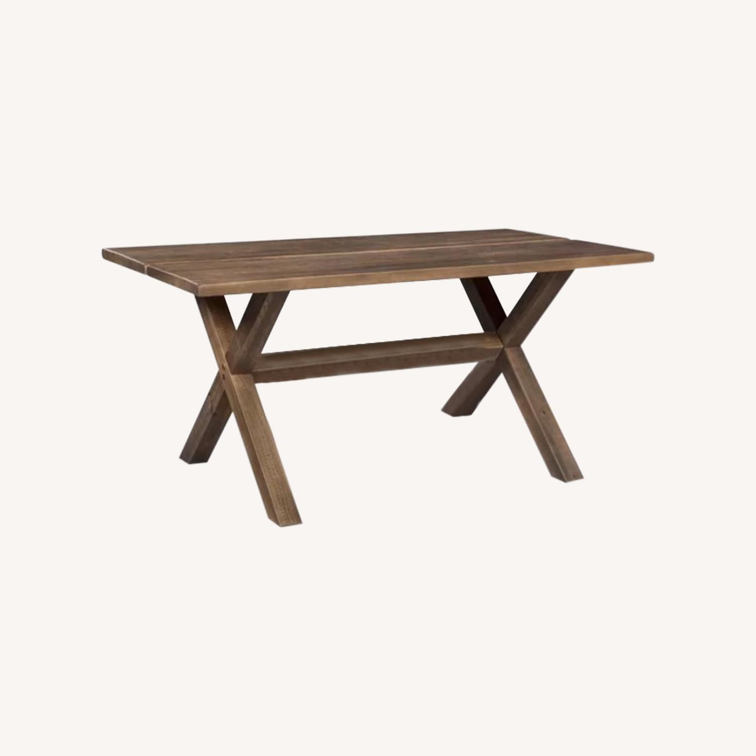 Seller's Notes:Solid wood, naturally distressed. Walnut finish. We love it but its too big for our space! Top could come off for transport. Happy to throw in the matching bench for free!