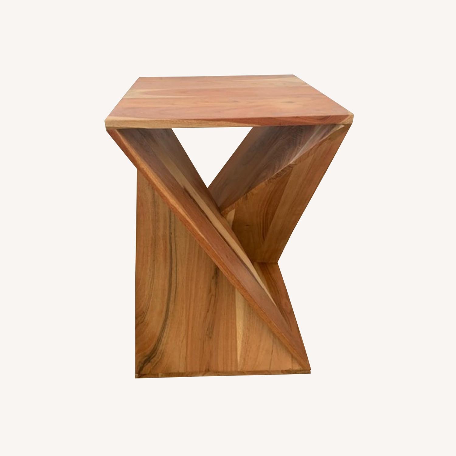 Seller's Notes:Solid wood with this clean-lined end table. I've only had it for a couple months, no scratches blemishes, in great condition. It wobbles but it's never been a problem and can be easily fixed.