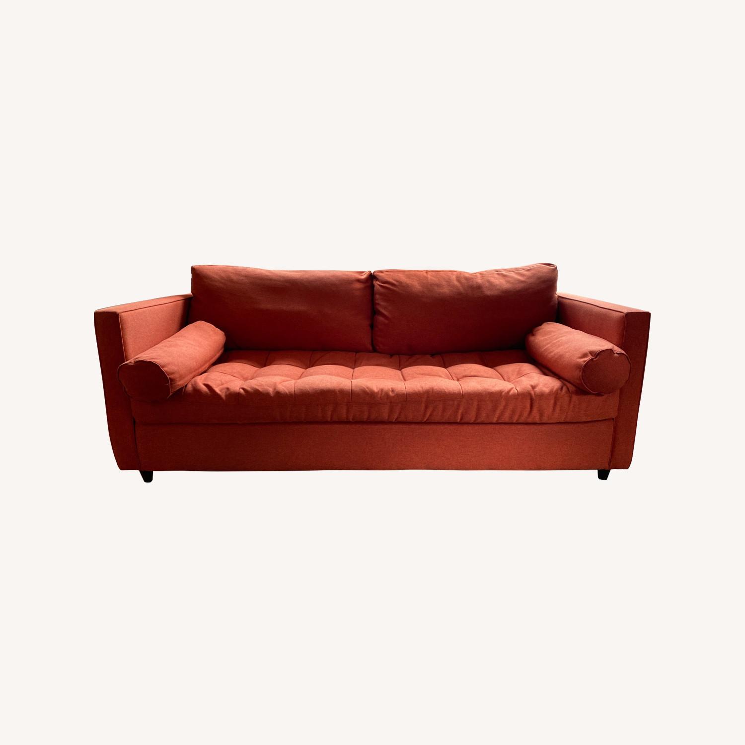 Seller's Notes:Joybird made this sleeper sofa new for us about 1.5 years ago, and we have loved her and tried to keep her in great condition. We're only selling her because we are moving across an ocean and can't take her with us! We bought her new for $2,330. She has some very minor (nearly invisible) wear, but she is still as comfortable as she was when we bought her, and the sleeper mattress is very nice. The color is vibrant but not garish or distracting. It's been very easy to clean her. This sleeper sofa was exactly what we wanted. Let us know what questions you have! The house has no stairs or elevator to cope with. Best, Ryan