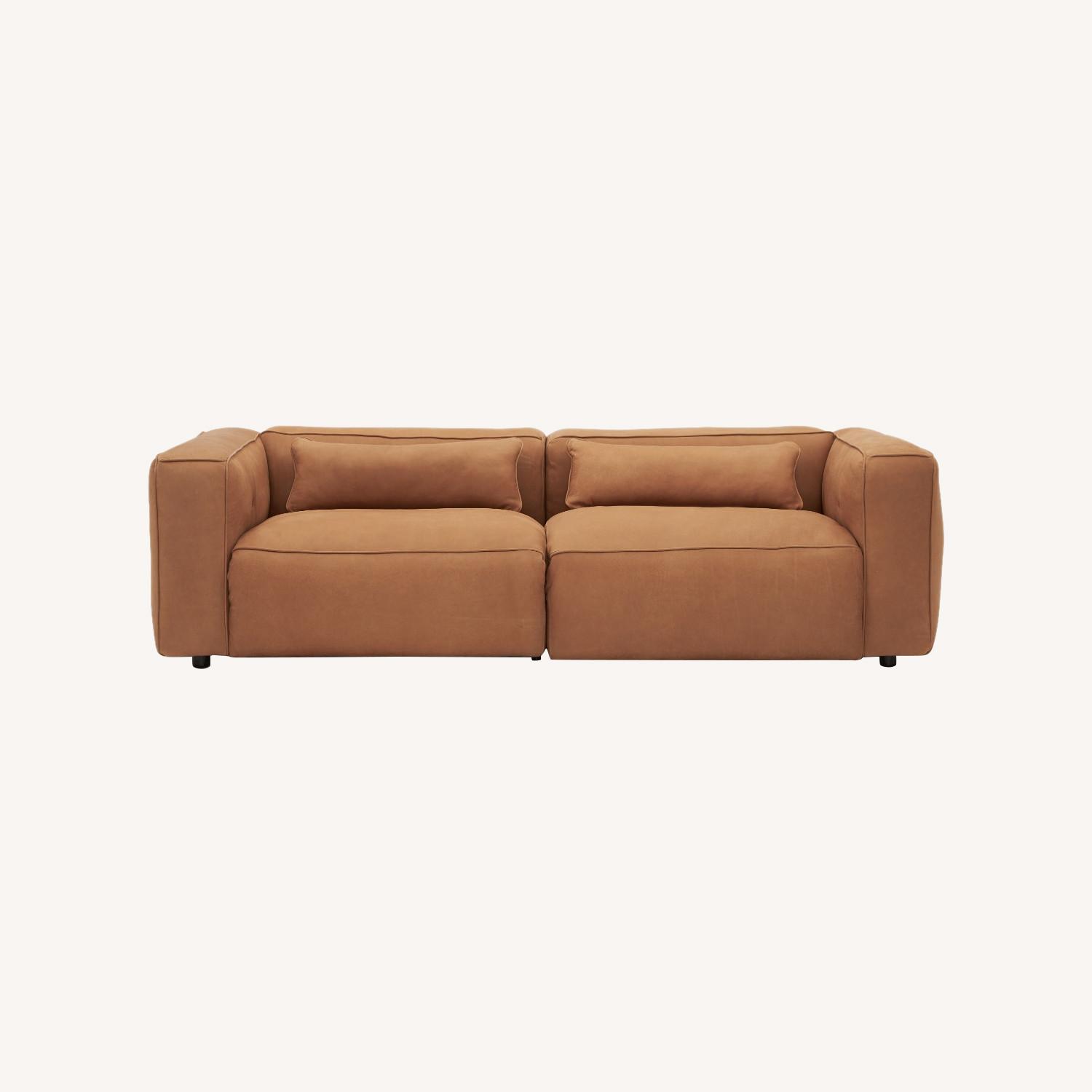 Seller's Notes:The Joybird Brock sofa is brand new. I took it out of the box just for pictures. Leather color is Toledo Camel which is a nice medium brown color.