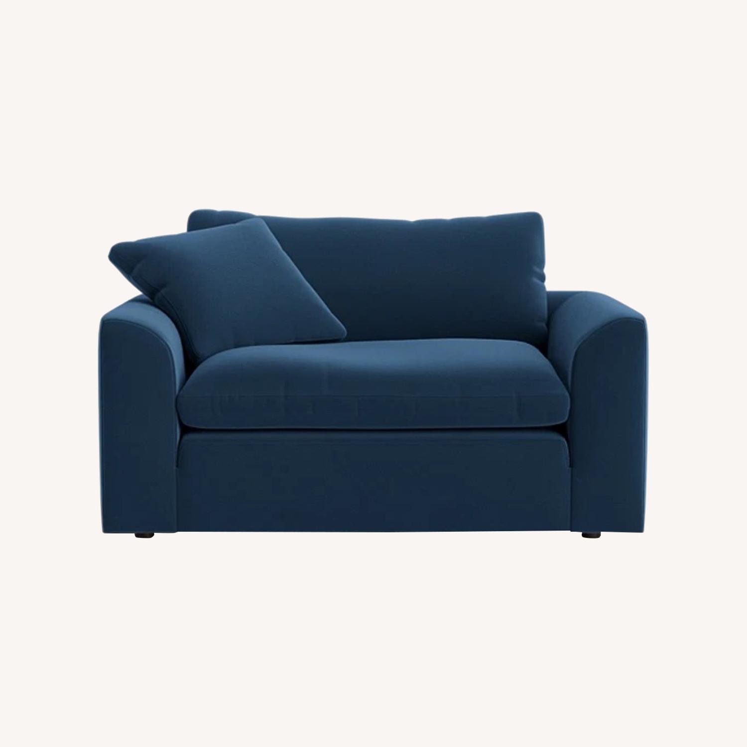 Seller's Notes:Bought this fantastic Joybird 3 years ago - it's truly my favorite purchase. Great for relaxing at home watching tv or lounging with a book. The velvet is really comfortable and the color really pops. However, my new apartment is weirdly angular and I sadly have to let this go. Hoping someone will get to enjoy it!