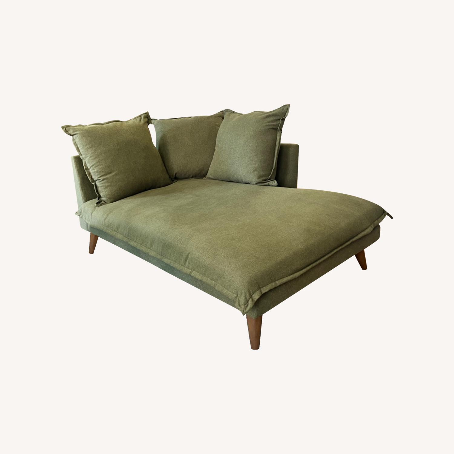 Seller's Notes:Joybird Denna Single Arm Chaise in Faithful Olive. Love the piece and have had for it about a year and half, it just won’t into my new place. It’s gently used and has not seen much wear and tear. There are no major spills, stains, or scratches.