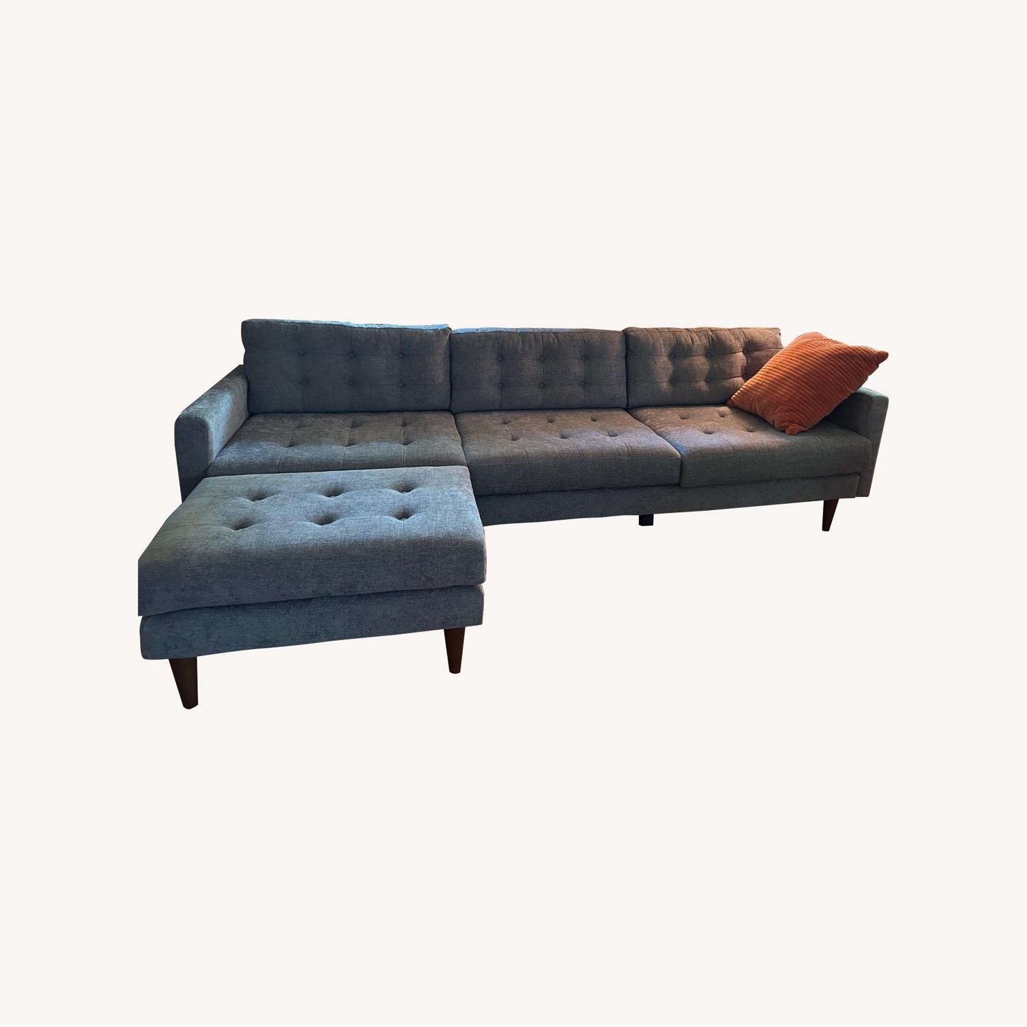 Seller's Notes:I moved to a small apartment and I cannot take the MCM furniture I purchased new less than 2 years ago. I have a big beautiful blue couch & matching ottoman from Joybird. A chic expansion on the Eliot Collection’s timeless aesthetic, this wider sofa offers a sprawling take on Mid-Century cool. Stretch out on its roomy seats, supportive cushions, and tufted button detailing—perfect for larger celebrations or casual get togethers.