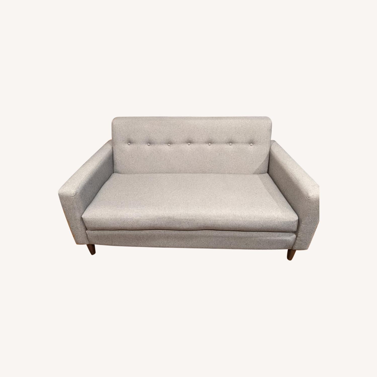 Seller's Notes:We purchased this sofa about two years ago and find it's perfect for a studio or small one bedroom apartment where you're trying to save space. It's comfortable and neutral in color. We like this little guy but we're moving to a bigger space. It has a light stain on the main cushion — see the photo where we've provided a coin to give you an idea of the size.