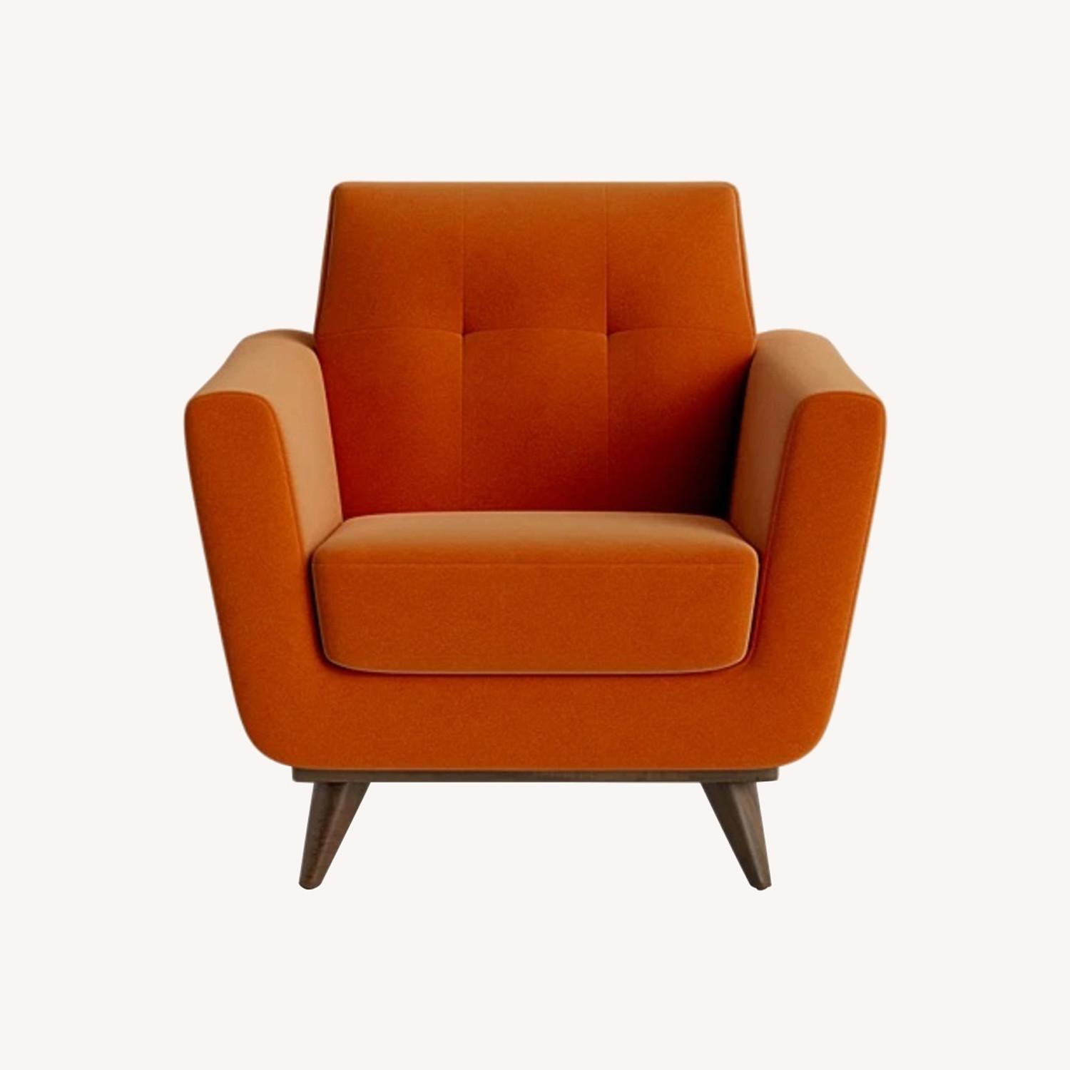Seller's Notes:The velvet fabric is Royale Hacienda. Very comfortable and the color is terrific. This chair has been "sat in" a total of 5 minutes. You can see the tags are still on it. It was delivered new on July 3rd, 2025. All the legs are Wood Stain Mocha. A Nice "Brand New" Mid-Century Modern piece. From its tufted details to its supportive armrests and adaptable design, this living room mainstay adds warmth and nuance to every lounge.