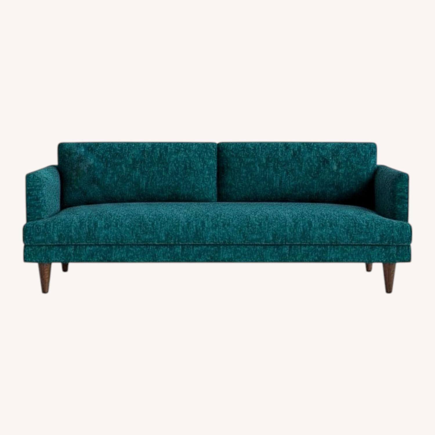 Seller's Notes:Comfortable teal sofa in excellent condition. It’s the Lewis Sofa in Crave Greenery from Joybird, with two additional pillows added. The fabric is durable and soft. No spills, rips or damage, from a smoke free home. The couch is the width of a bed, and with its one big cushion, it makes a great guest bed with the addition of a fitted sheet. Link to Retail Sofa: https://joybird.com/sofas/lewis-sofa/?fabric=crave_greenery Link to Dimensions: https://content.cylindo.com/api/v2/5022/products/9514/dimensions/9514.png?size=1024&dimensionCode=YQFT&feature=UPHOLSTERY:PRIME%20PEACOCK