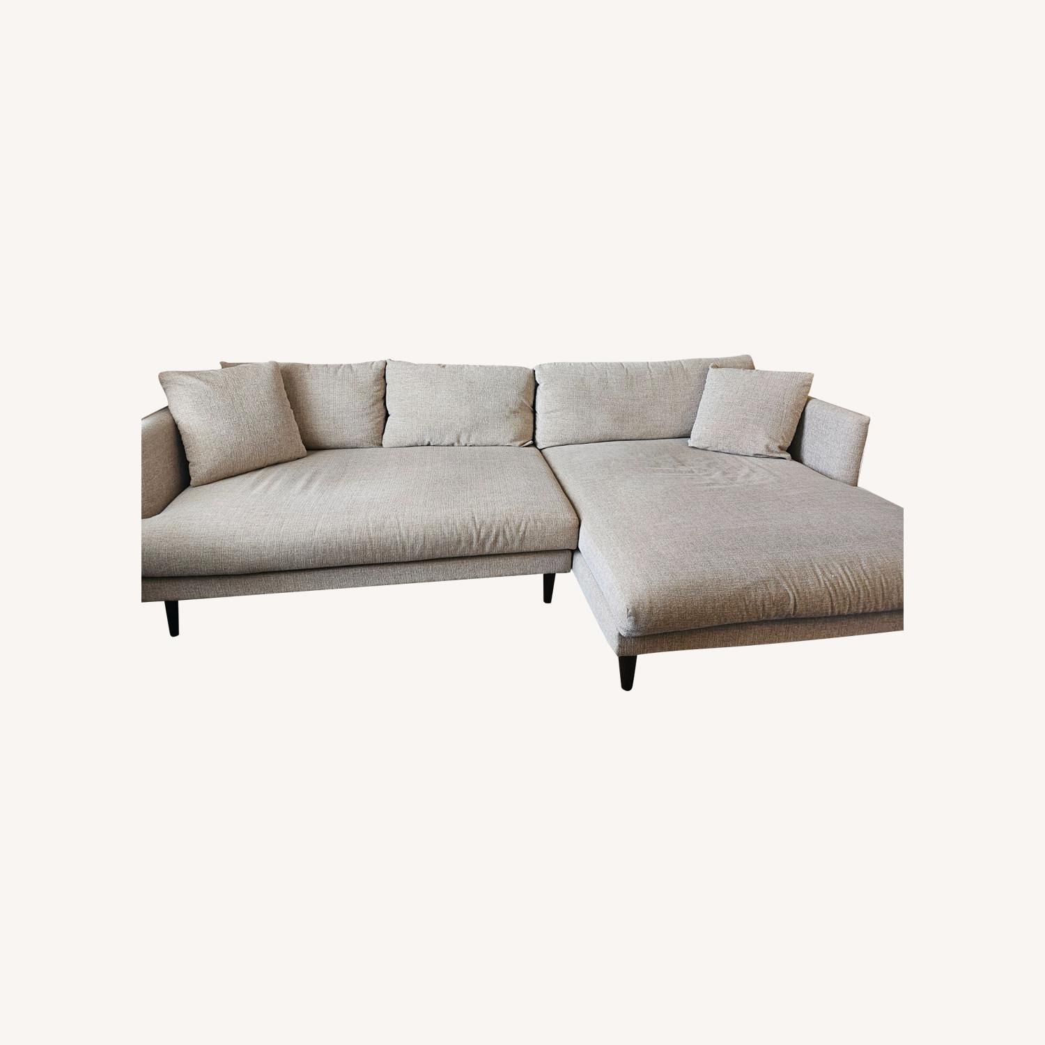 Seller's Notes:2 year old Joybird Lewis Sectional couch in great condition! The fabric is the Cody Sandstone safeguard so it's resistant to stains and odors