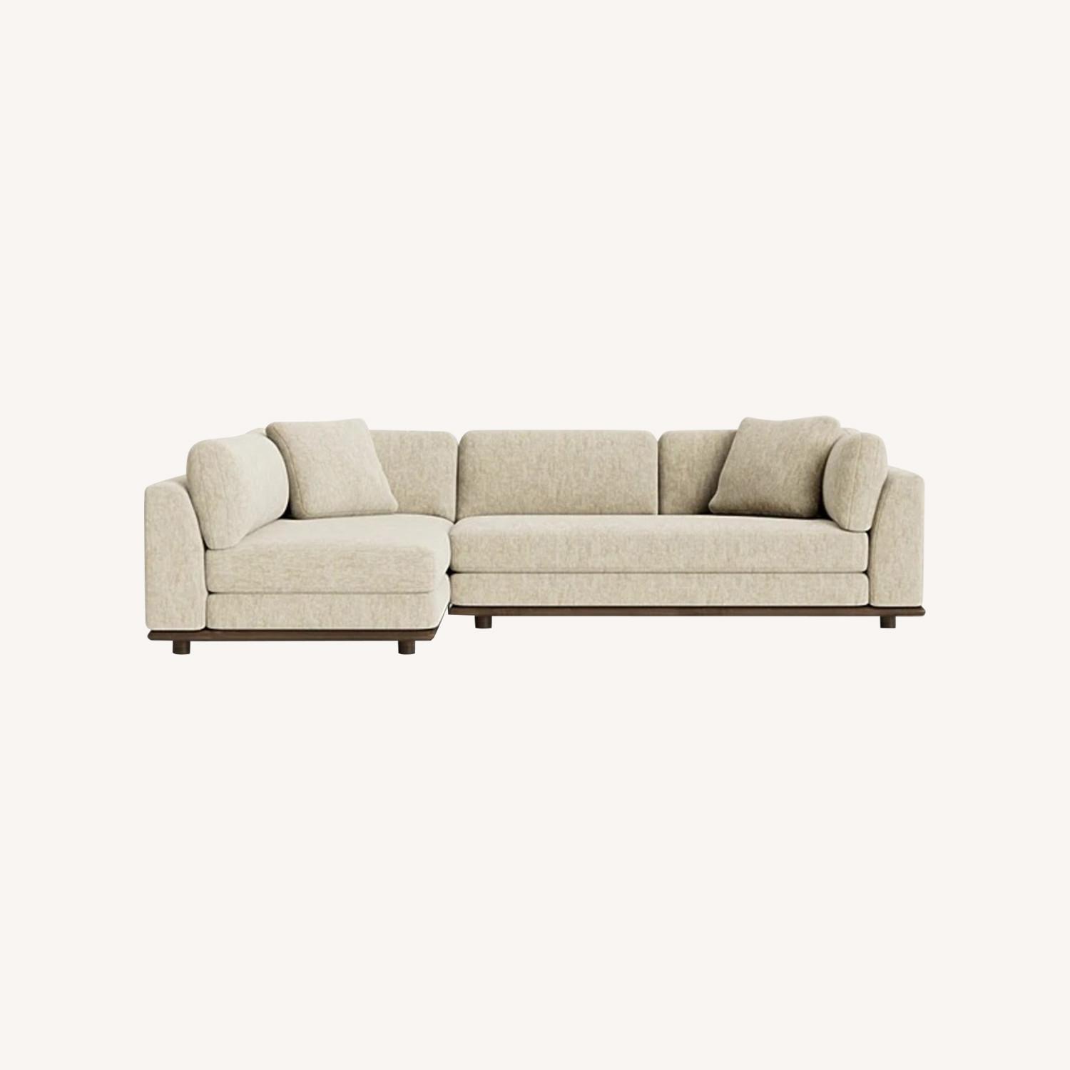 Seller's Notes:Beautiful Joybird Miller Sectional for sale in Irish Cream with a Mocha brown frame. Although the color is called Irish Cream, the actual color of the couch is more similar to a light warm gray. Left Orientation - please see original listing on Joybird's website here: