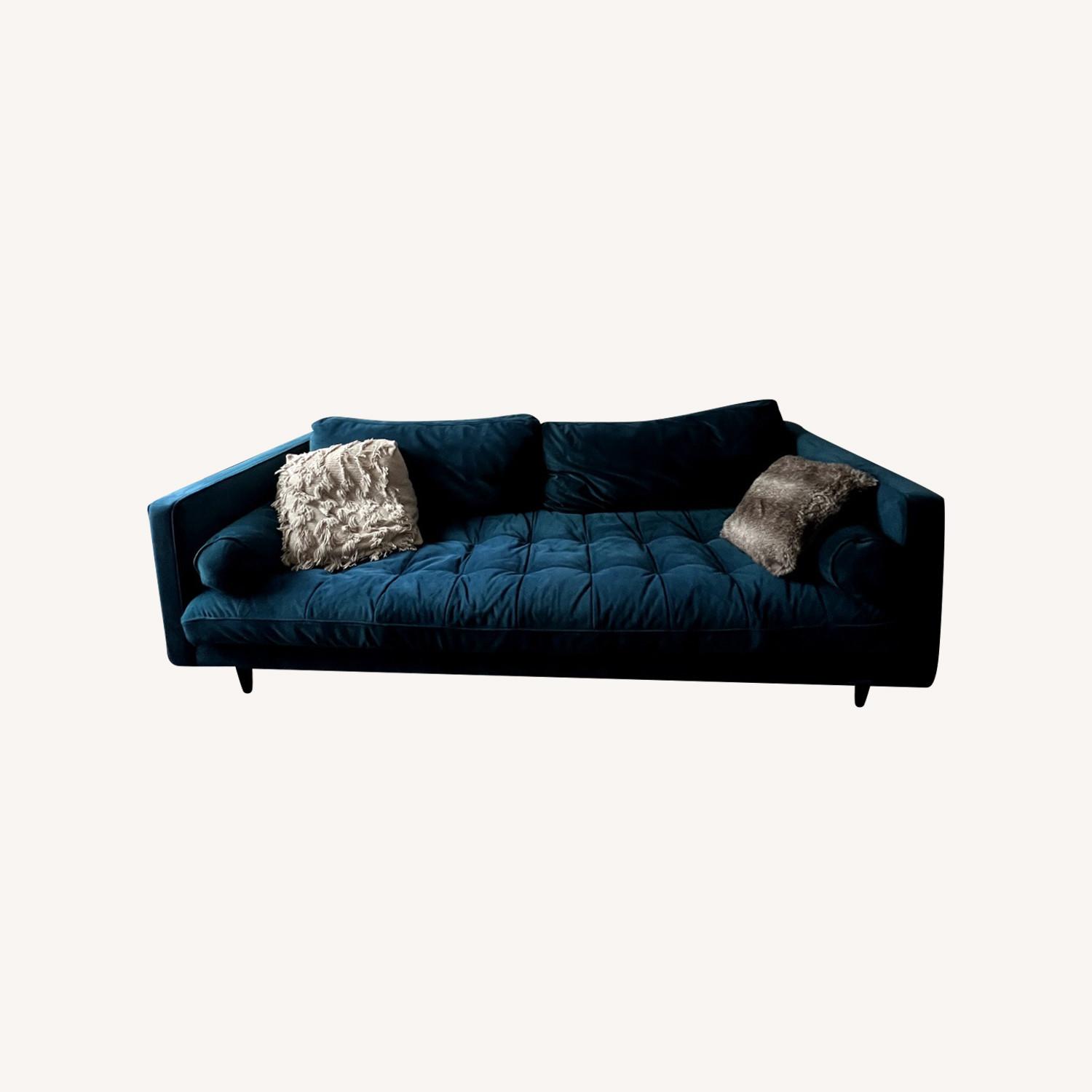 Seller's Notes:Joybird Peacock Blue Briar Sofa. I loved this couch, unfortunately I am moving out of the country.