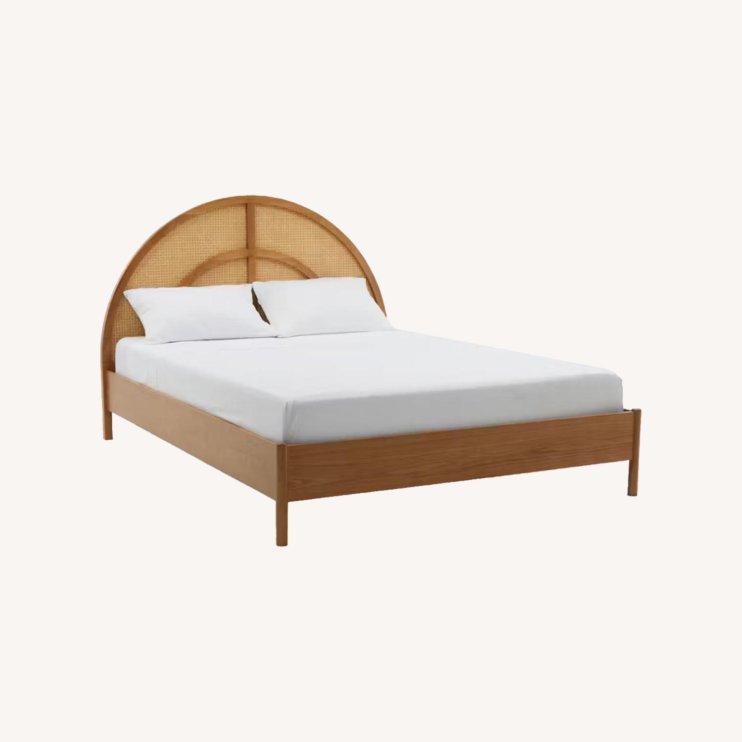 Seller's Notes:Joybird Sienna queen size platform bed. Beautiful and unique half-circle rattan headframe suits any decor. In great condition; no wobbling or significant scratches. The feet are on elevated coasters, so it's never been dragged across the floor. Only selling due to a cross-country move. Mattress and bedding not included.