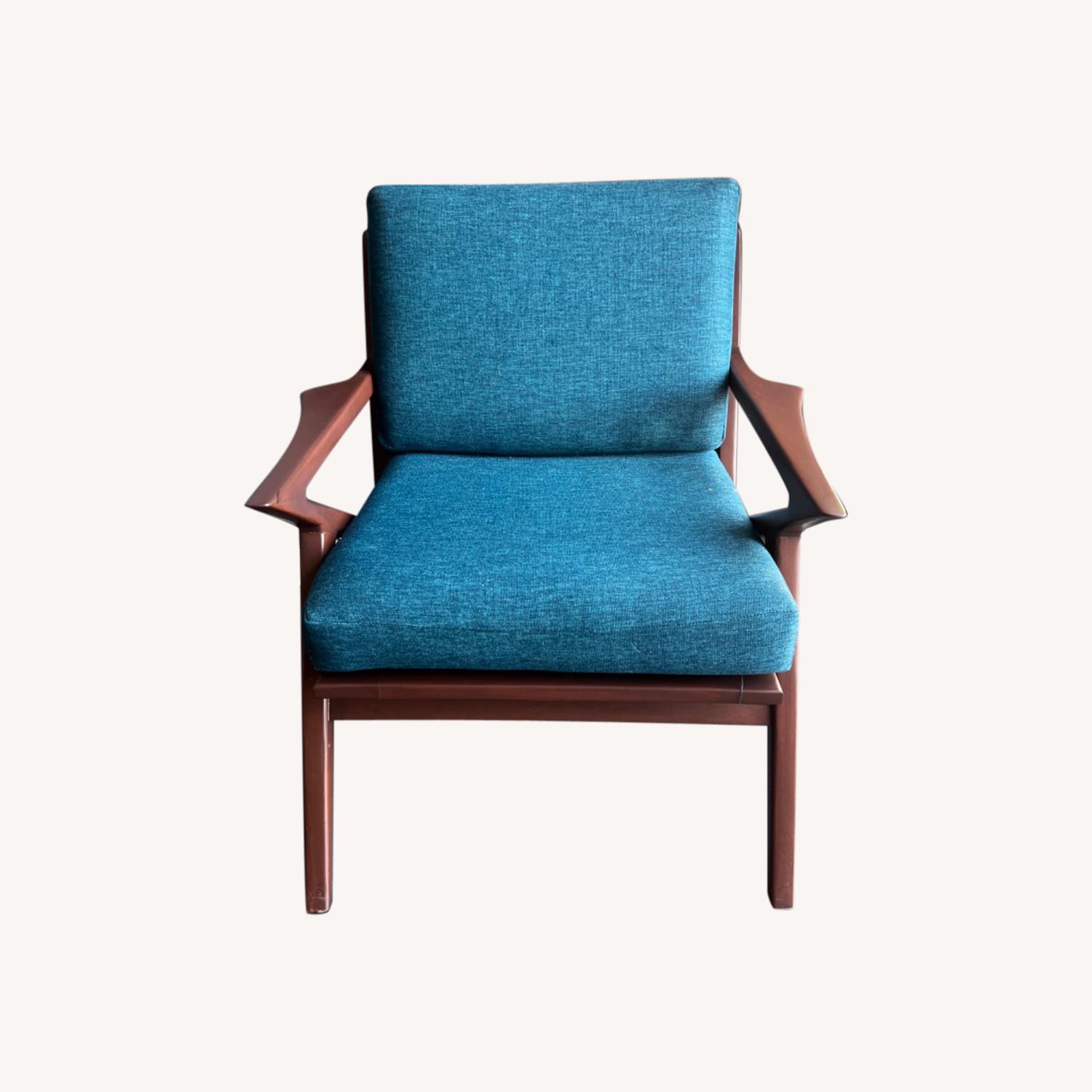 Seller's Notes:Joybird mid-century style chair. In very good slightly-used condition. Cushion is teal blue thick canvas-y fabric. Used in reception area of an office. No stains or odors. If you’re looking very carefully you might notice slight wear in the bottom of legs.