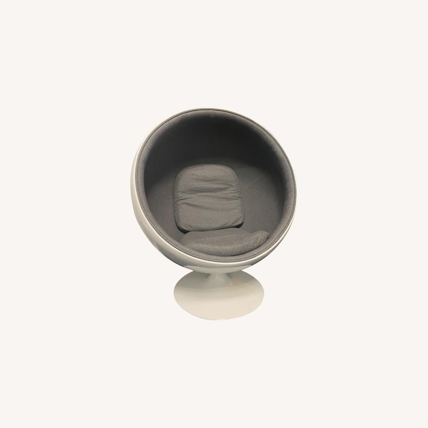 Seller's Notes:Priced to Sell. White Kardiel Ball Chair with Grey (flannel-like, referred to as microfiber) Interior. Two removable cushions. Chair is very gently used. There are some slight cracks (picture shown) that may be a natural settling of sorts as chair has not had a lot of use. Purchased in April 2018. Currently retails for $1197 but do not see grey color available. https://www.kardiel.com/ball-chair-white-red-microfiber/ From their site: Construction Style Mid-Century Modern Ball Chair Fabric Type Fade resistant durable "Finland Thick" Microfiber upholstery Fabric Content 60% Linen, 20% Cotton, 20% Nylon Foam Type Multi-density seat and back cushion Body Frame Dimension True Pure Fiberglass Shell Panel Interior Classic 5 panel interior Dimension Overall Dimension Width 40.2" x Depth 35.4" x Height 47.2" Features 360 Degree steel ball bearing swivel base Removable zippered seat & back cushion Floor protector felt on underside of base Smooth Contour foam body wrap provides a meticulously smooth contour for the interior paneling